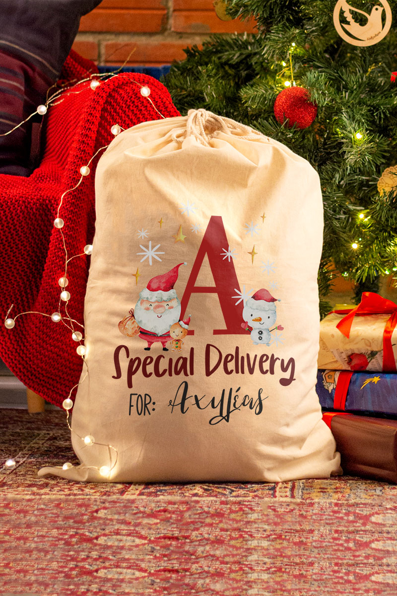 Οι προσωποποιημένοι Χριστουγεννιάτικοι σάκοι δώρων σας δίνουν τη δυνατότητα να προσθέσετε ένα προσωπικό άγγιγμα στα δώρα σας. Απλά επιλέξτε το σχέδιο που σας αρέσει, προσθέστε το όνομα του παραλήπτη και δημιουργήστε έναν σάκο δώρου που θα εντυπωσιάσει.
