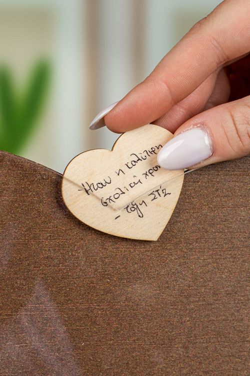 Η ξύλινη κατασκευή λειτουργεί όπως ένας “κουμπαράς ευχών”. Προσωποποιήστε το ευχολόγιο με όνομα και ευχές / τάξη / σχολείο .