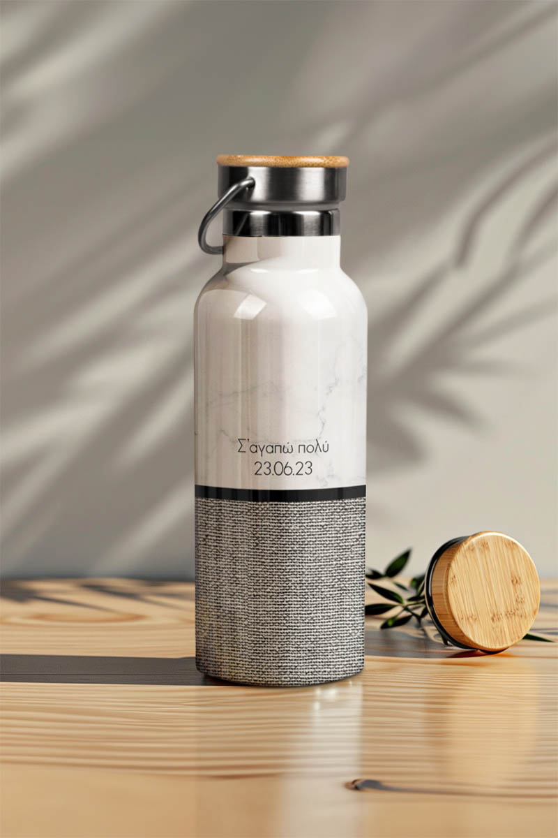 Τα προσωποποιημένα μπουκάλια θερμός σας δίνουν τη δυνατότητα να έχετε ένα πρακτικό αντικείμενο που αντανακλά τον χαρακτήρα, το στυλ και το γούστο σας. Είτε πρόκειται για ένα αγαπημένο όνομα, μια ιδιαίτερη αφιέρωση ή μια αγαπημένη φωτογραφία, το αποτέλεσμα θα είναι ένα μπουκάλι που σας αντιπροσωπεύει πλήρως.