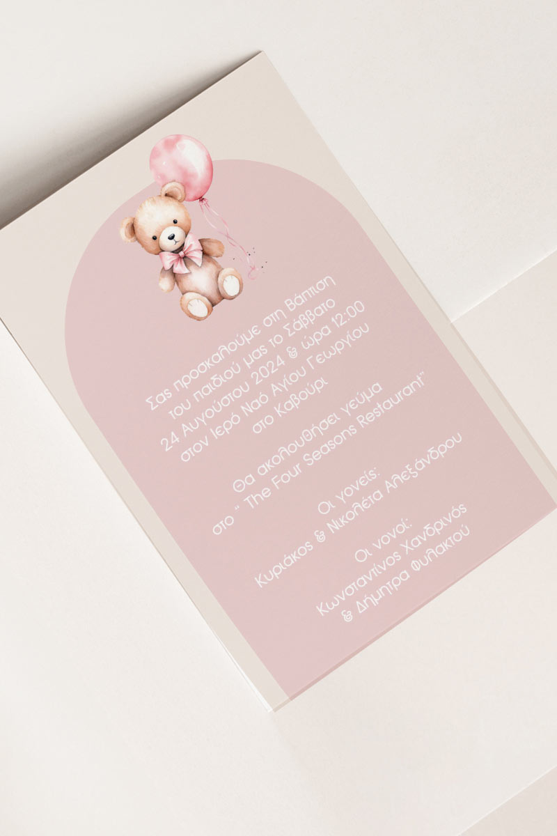 Κάθε λεπτομέρεια μετράει στην πιο όμορφη στιγμή της ζωής σας. Αυτό αντικατοπτρίζεται στα Προσκλητήρια Βάπτισης με σχέδιο Αρκουδάκι με Καφέ Μπαλόνια, τα οποία χρησιμοποιούν υψηλής ποιότητας ιταλικό χαρτί και Myikona High Definition εκτύπωση. Διαθέσιμα σε διαφορετικές διαστάσεις.
