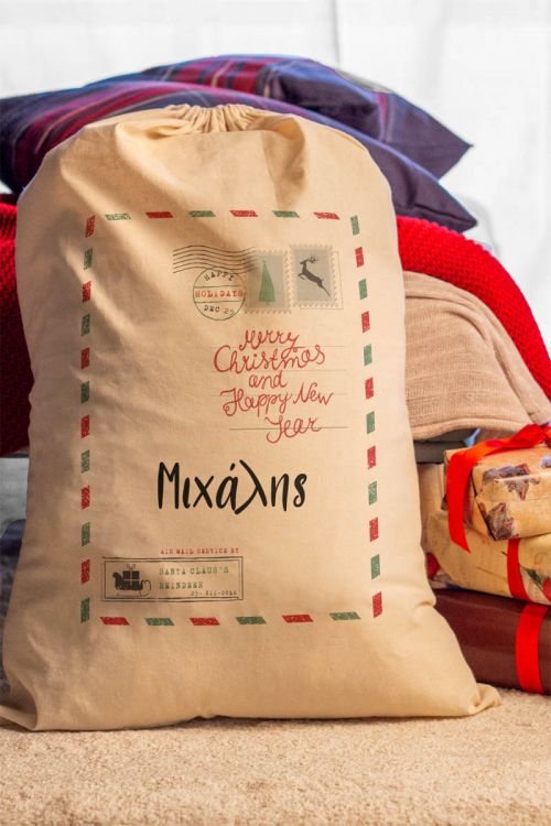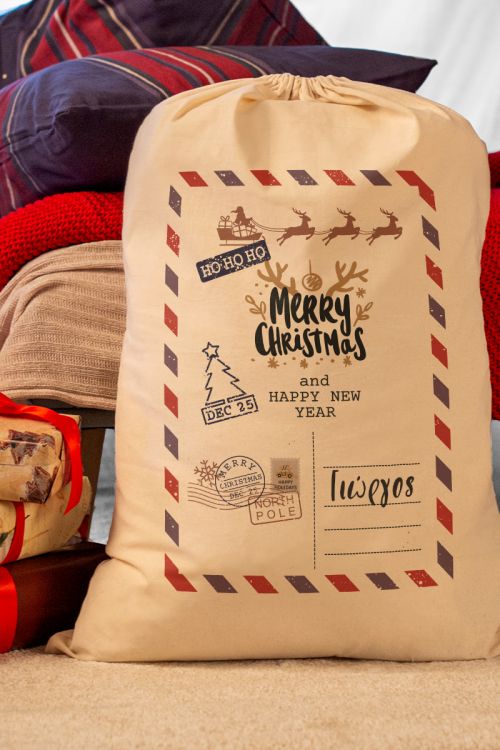 Οι προσωποποιημένοι Χριστουγεννιάτικοι σάκοι δώρων σας δίνουν τη δυνατότητα να προσθέσετε ένα προσωπικό άγγιγμα στα δώρα σας. Απλά επιλέξτε το σχέδιο που σας αρέσει, προσθέστε το όνομα του παραλήπτη και δημιουργήστε έναν σάκο δώρου που θα εντυπωσιάσει.