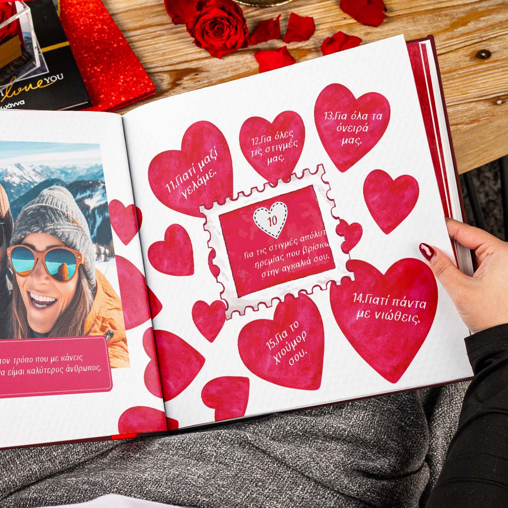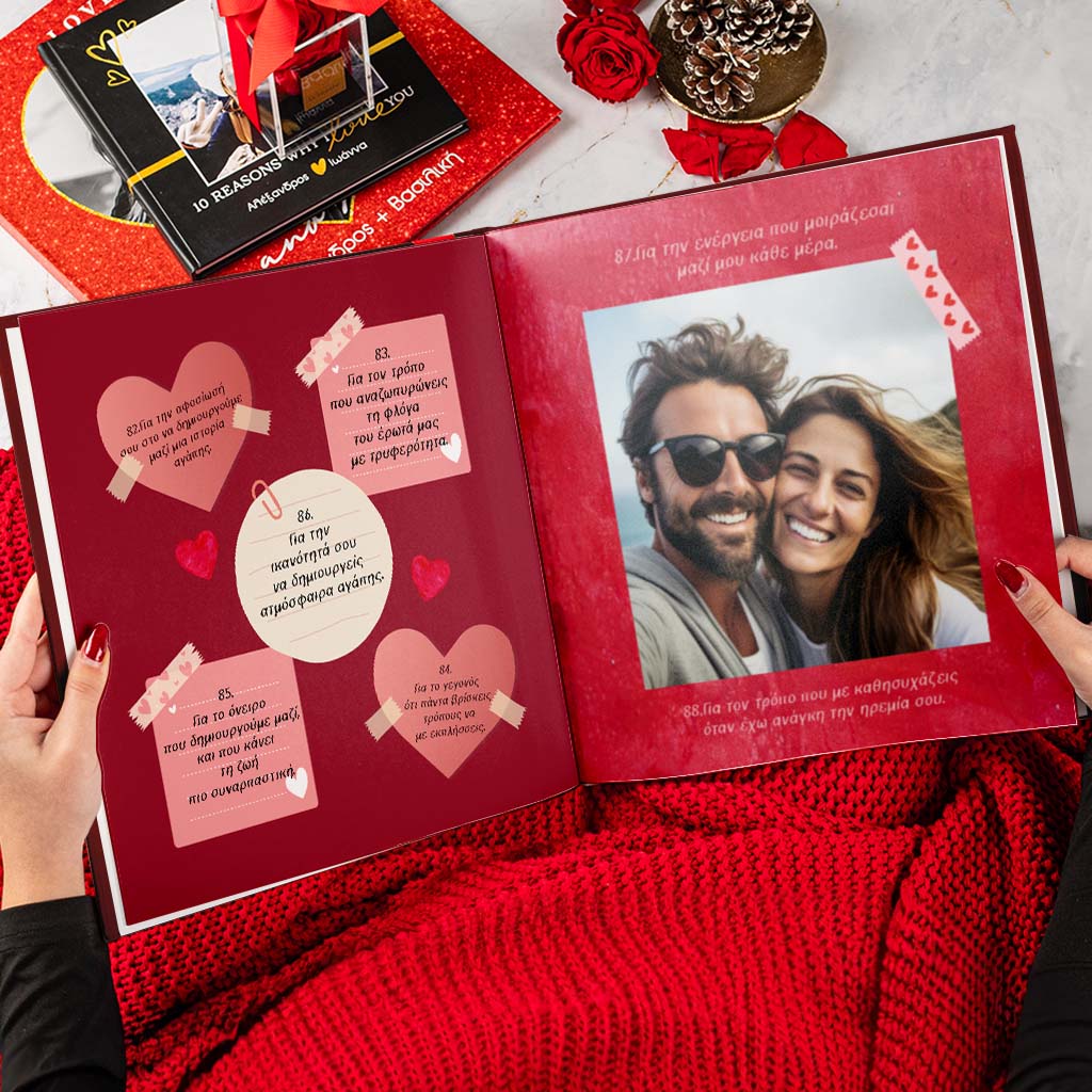 Δημιουργήστε το δικό σας Photobook με 100 λόγους αγάπης, γεμάτο με όλες τις όμορφες αναμνήσεις σας & μεταφέρετε το μήνυμα αγάπης σας με τον πιο πρωτότυπο, ρομαντικό & έξυπνο τρόπο.