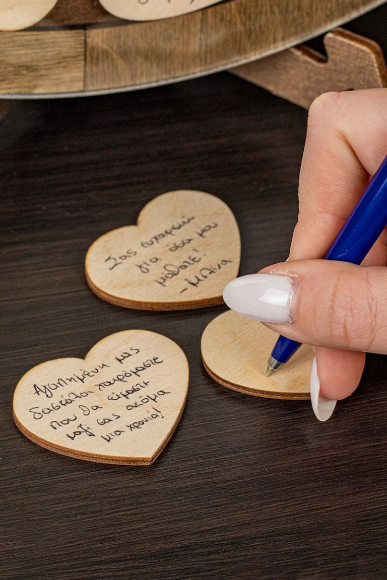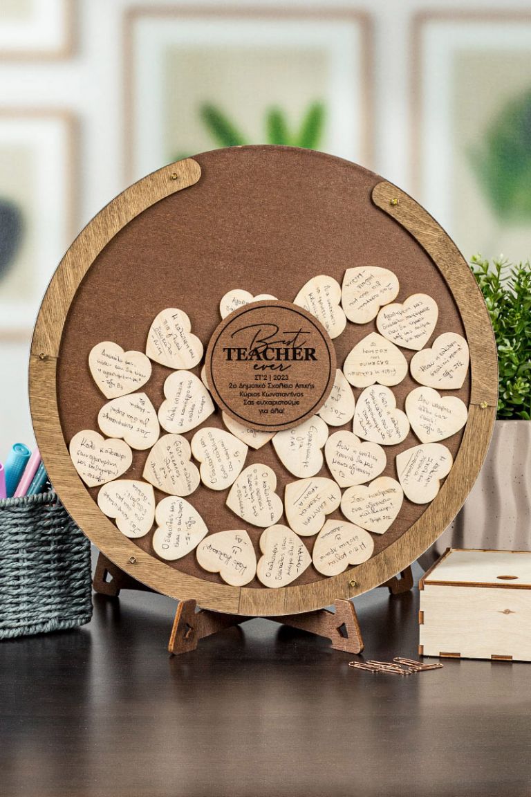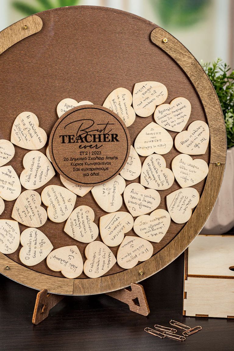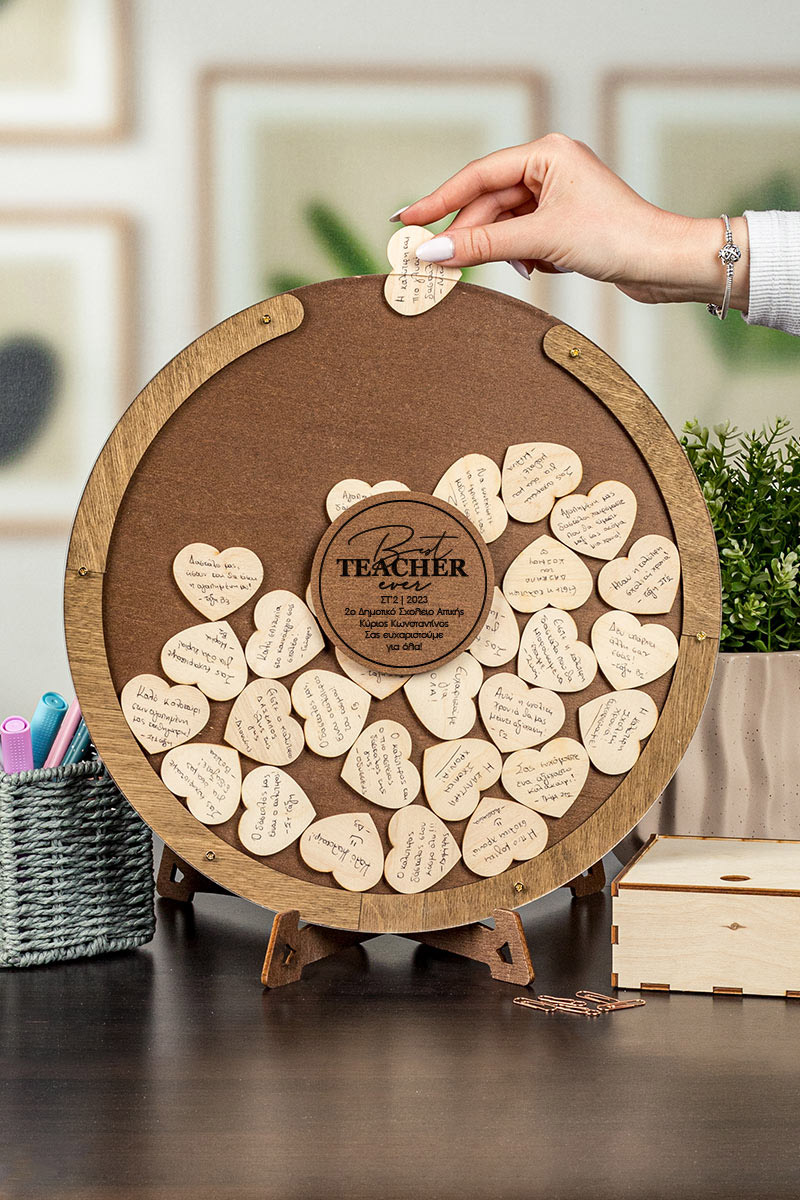 Η ξύλινη κατασκευή λειτουργεί όπως ένας “κουμπαράς ευχών”. Προσωποποιήστε το ευχολόγιο με όνομα και ευχές / τάξη / σχολείο .