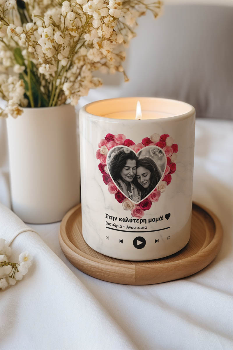 Κάθε κερί μπορεί να προσαρμοστεί με φωτογραφίες που εσείς επιλέγετε, με το όνομά σας ή με μια αφιέρωση που έχει ιδιαίτερη σημασία για εσάς. Επίσης, η προσωποποίηση δημιουργεί ένα χειροποίητο αρωματικό κερί που δεν είναι απλώς αξεσουάρ διακόσμησης. Είναι ένα αντικείμενο που αντικατοπτρίζει την προσωπικότητά σας και τις ξεχωριστές στιγμές της ζωής σας.