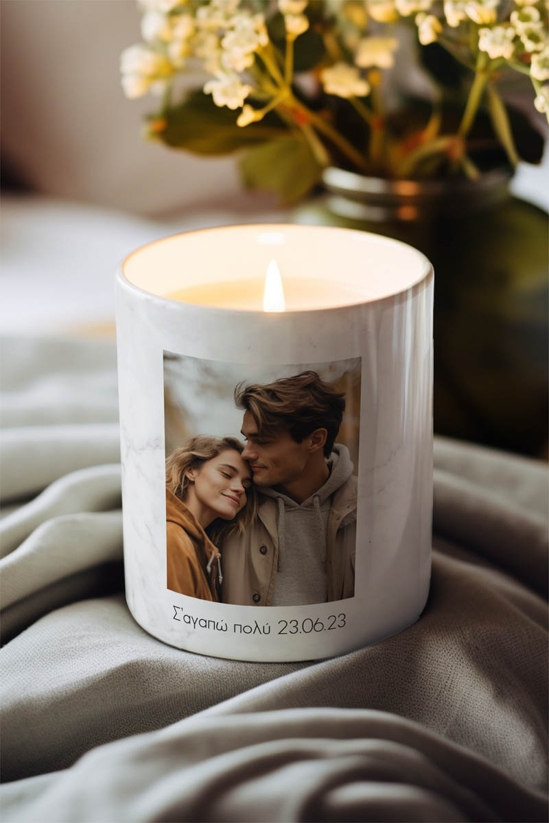 Κάθε κερί μπορεί να προσαρμοστεί με φωτογραφίες που εσείς επιλέγετε, με το όνομά σας ή με μια αφιέρωση που έχει ιδιαίτερη σημασία για εσάς. Επίσης, η προσωποποίηση δημιουργεί ένα χειροποίητο αρωματικό κερί που δεν είναι απλώς αξεσουάρ διακόσμησης. Είναι ένα αντικείμενο που αντικατοπτρίζει την προσωπικότητά σας και τις ξεχωριστές στιγμές της ζωής σας.