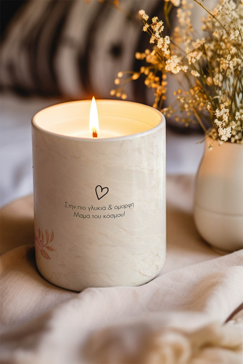 Κάθε κερί μπορεί να προσαρμοστεί με φωτογραφίες που εσείς επιλέγετε, με το όνομά σας ή με μια αφιέρωση που έχει ιδιαίτερη σημασία για εσάς. Επίσης, η προσωποποίηση δημιουργεί ένα χειροποίητο αρωματικό κερί που δεν είναι απλώς αξεσουάρ διακόσμησης. Είναι ένα αντικείμενο που αντικατοπτρίζει την προσωπικότητά σας και τις ξεχωριστές στιγμές της ζωής σας.