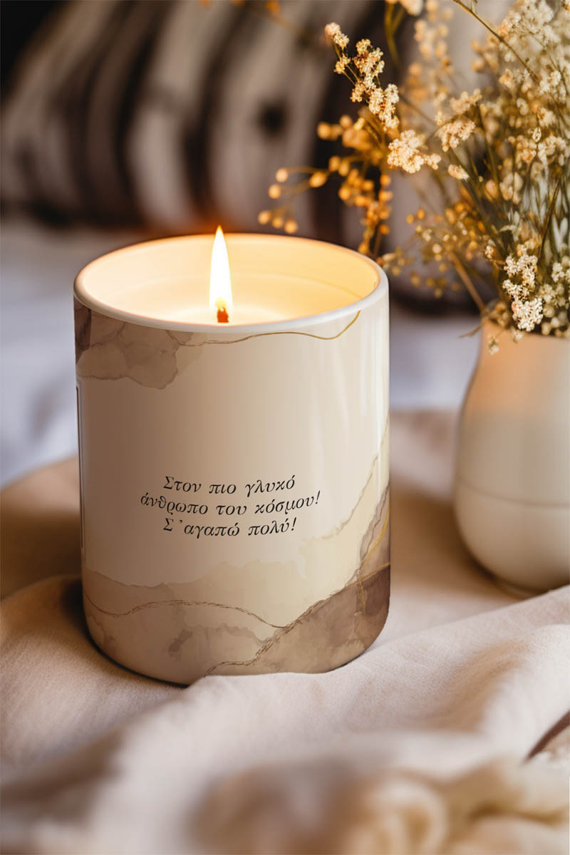 Το προσωποποιημένο χειροποίητο αρωματικό κερί αναδεικνύει την τέχνη της διακόσμησης του σπιτιού με έναν μοναδικό τρόπο. Τα κεριά μας δεν είναι απλά αρωματικά – είναι ένας τρόπος να δημιουργήσετε έναν χώρο γεμάτο αναμνήσεις και συναισθήματα.