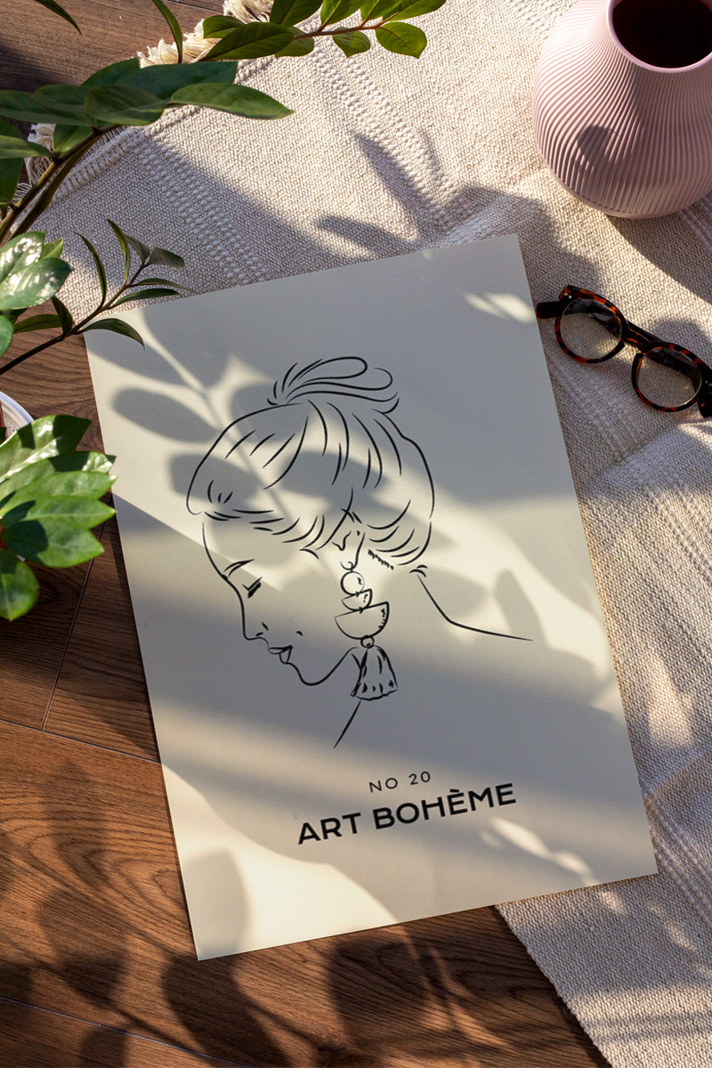 Art Boheme Line Art Woman No20 Premium Poster