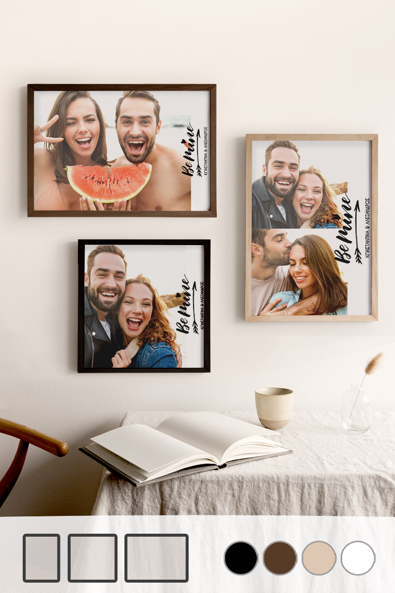 Κάνουμε πιο εύκολο από ποτέ τον τρόπο με τον οποίο μπορείτε να δημιουργήσετε online τα δικά σας έργα τέχνης. Προσθέστε στις κορνίζες σας μονογράμματα, κείμενα, λεζάντες και πολλά άλλα. Σε λίγα λεπτά, μπορείτε να παραγγείλετε ένα έργο τέχνης που θα μετατρέψει έναν συνηθισμένο τοίχο στο σημείο εστίασης οποιουδήποτε δωματίου. Μπορείτε να δημιουργήσετε κορνίζες με τις καθημερινές σας στιγμές, το Γάμο σας, τη Βάπτιση του παιδιού σας, τα ταξίδια σας, τις διακοπές σας, τις σημαντικές στιγμές σας και πολλά άλλα.
