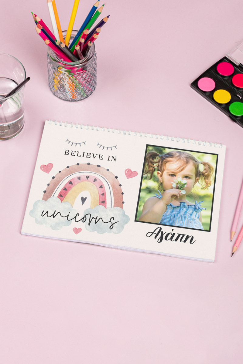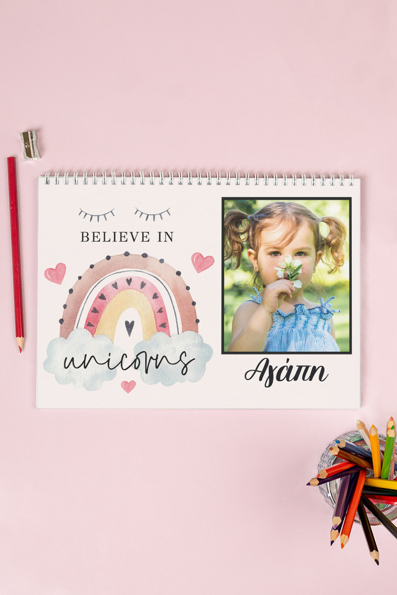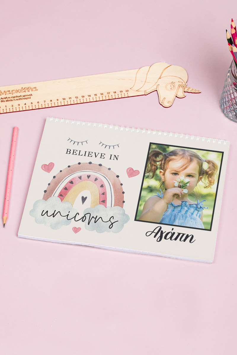 Μπλοκ Ζωγραφικής με Όνομα και Φωτογραφία, Believe In Unicorns