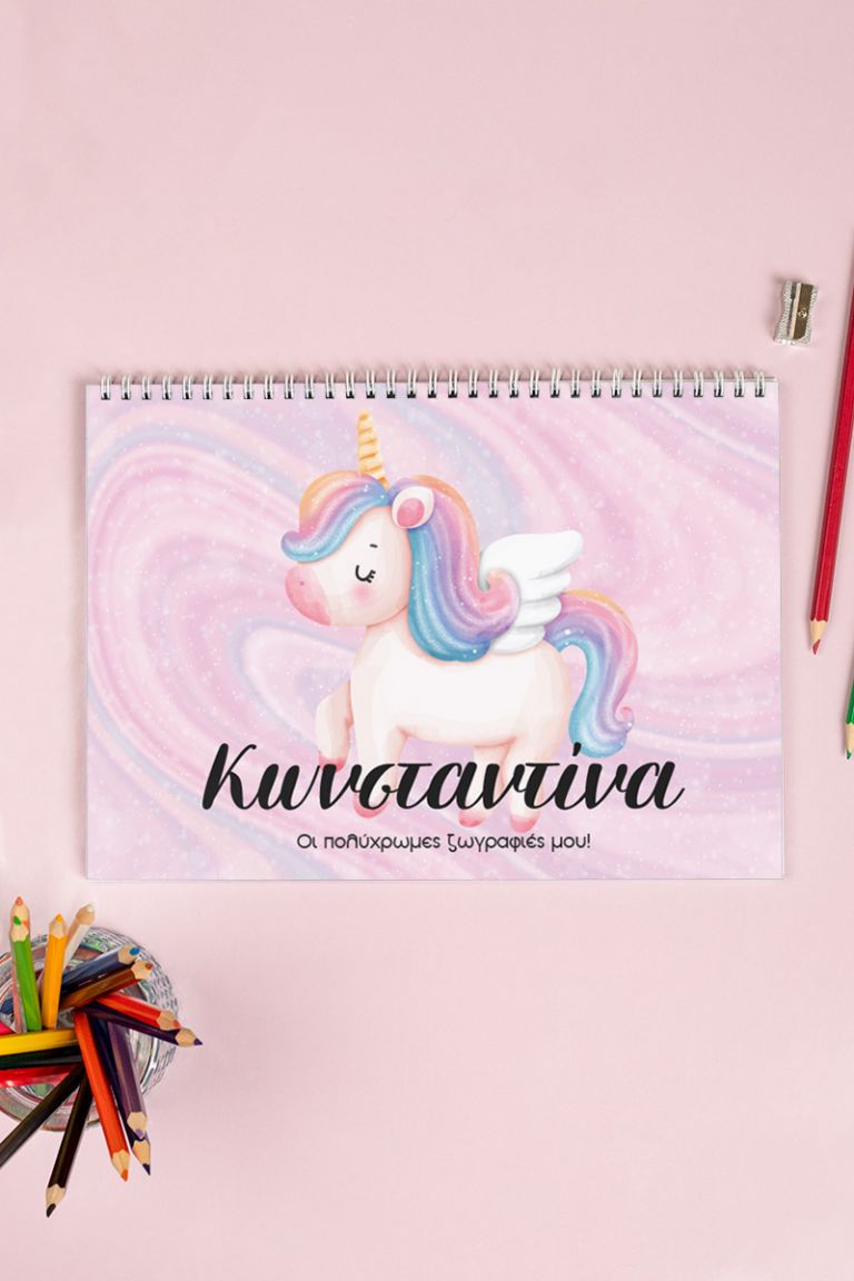 Μπλοκ Ζωγραφικής με Όνομα και Τίτλο, Flying Unicorn