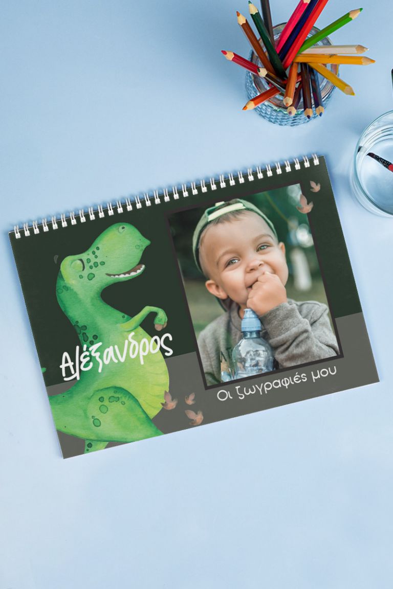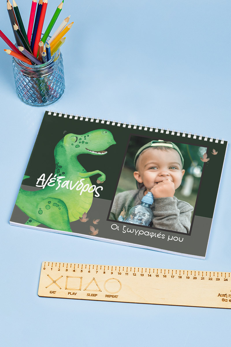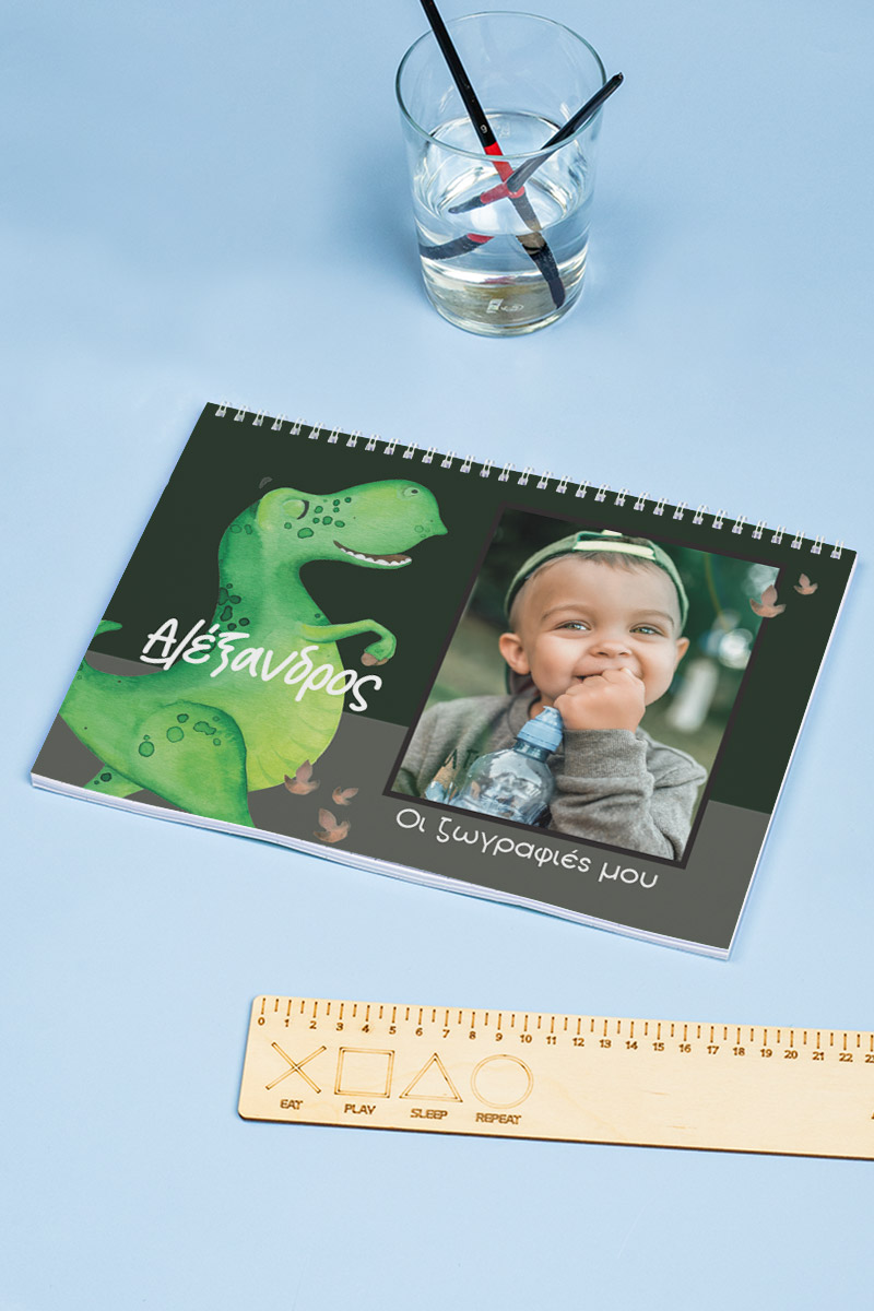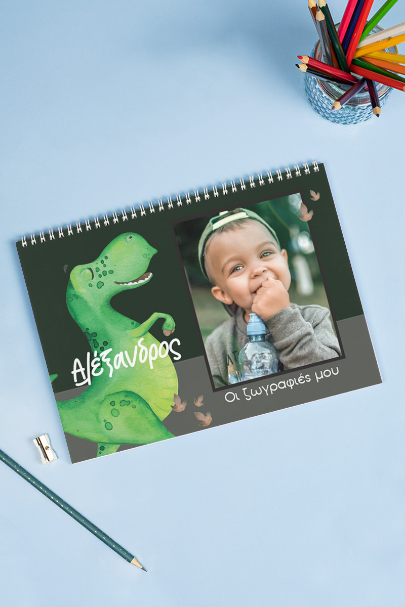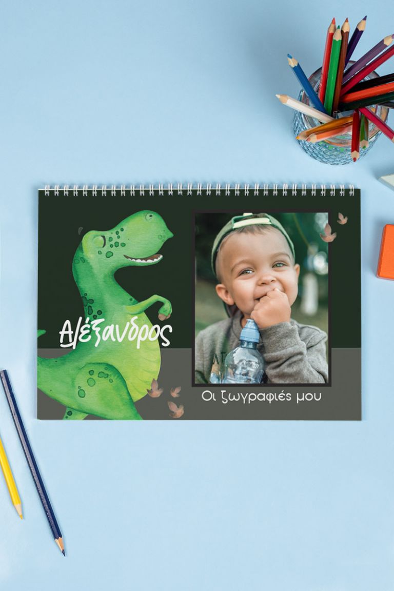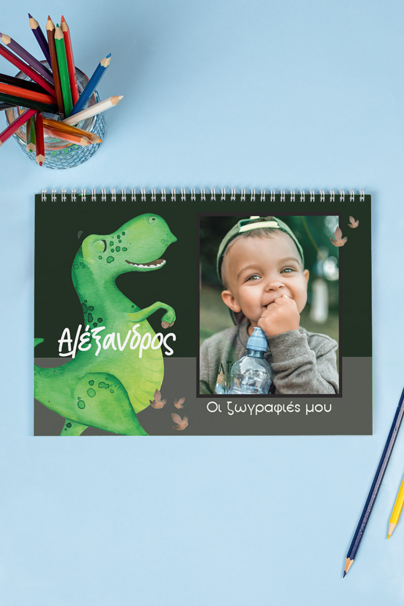 Μπλοκ Ζωγραφικής με Όνομα και Φωτογραφία, Happy Dino