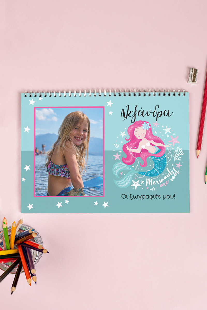 Μπλοκ Ζωγραφικής με Όνομα και Φωτογραφία, Real Mermaids