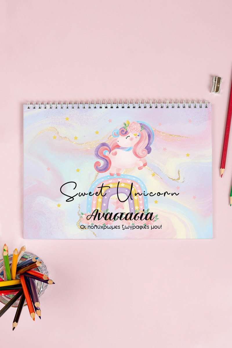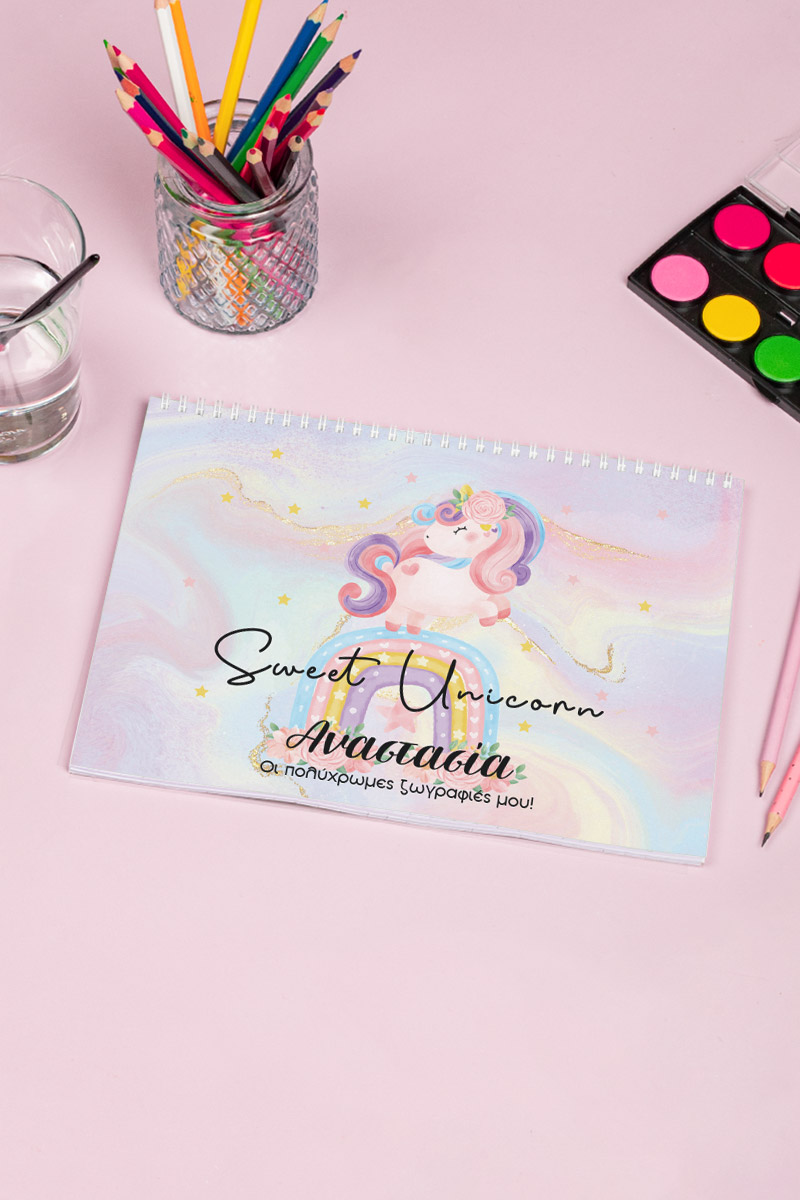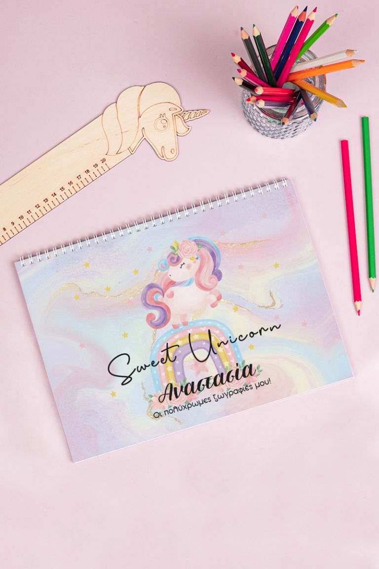 Μπλοκ Ζωγραφικής με Όνομα και Τίτλο, Sweet Unicorn