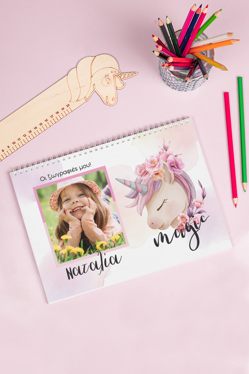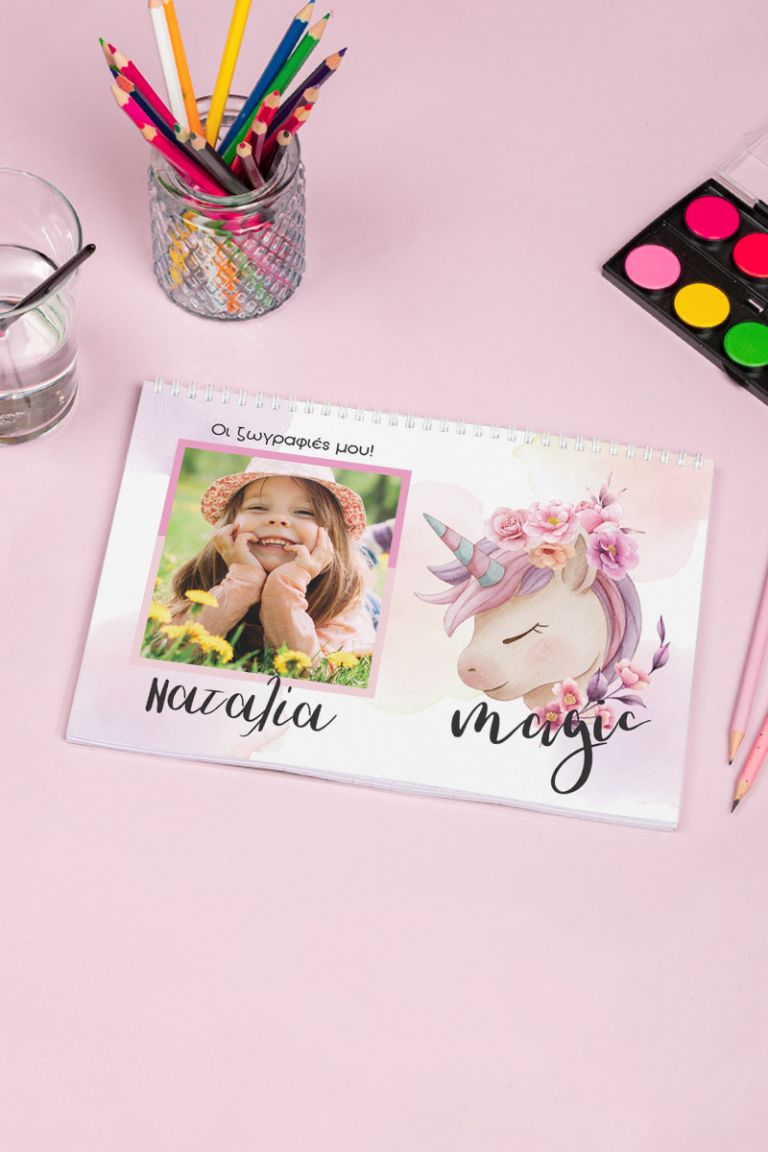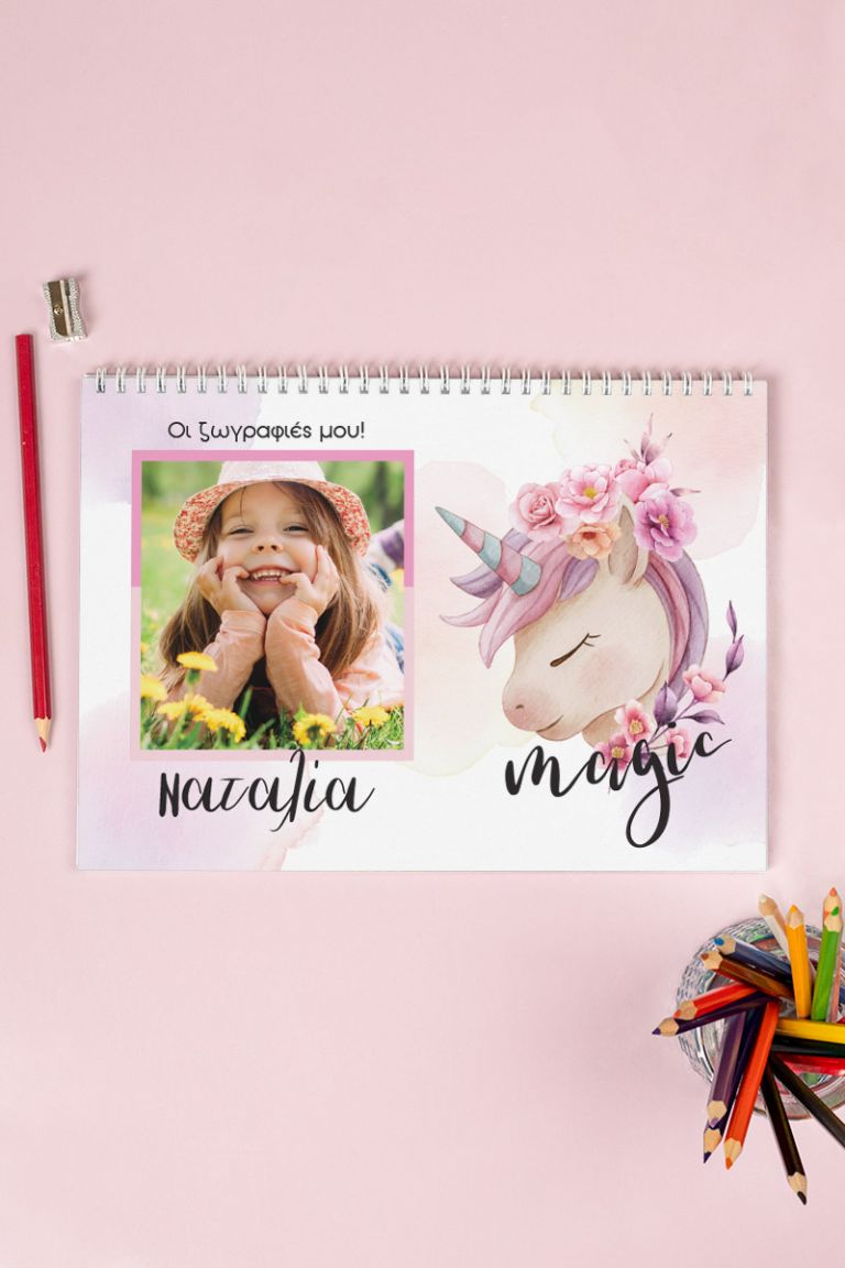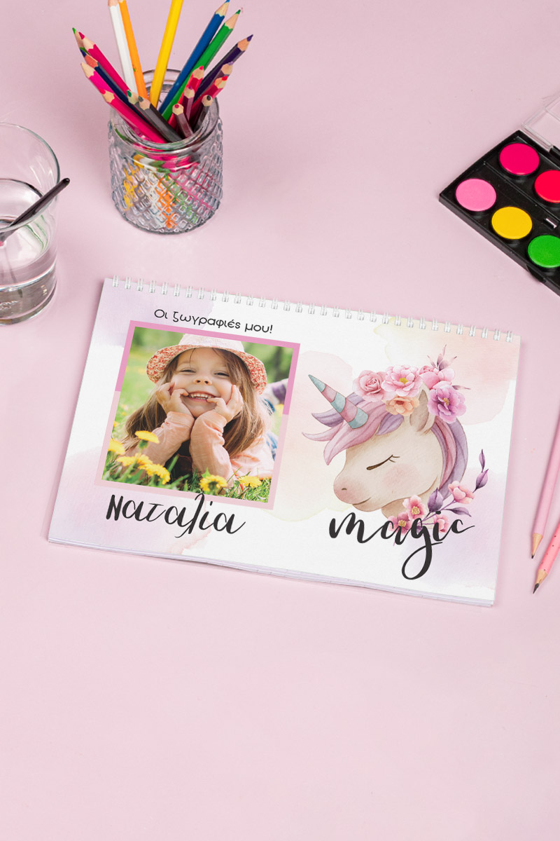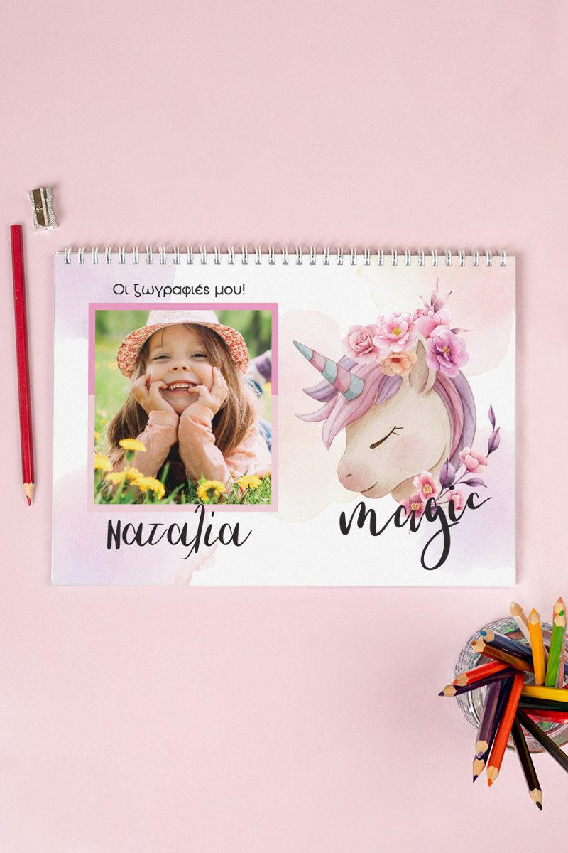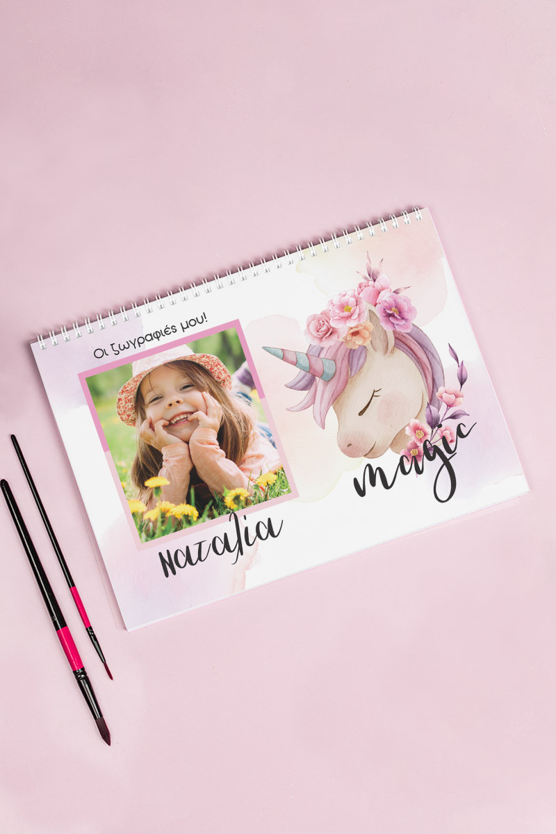 Μπλοκ Ζωγραφικής με Όνομα και Φωτογραφία, Unicorn Girl