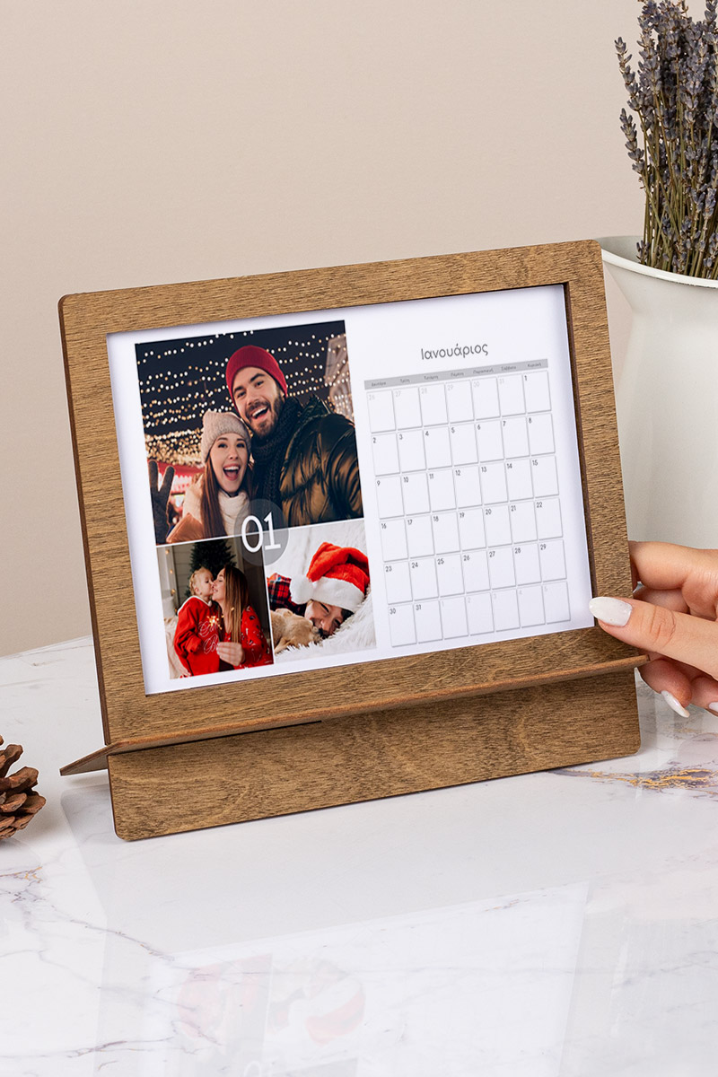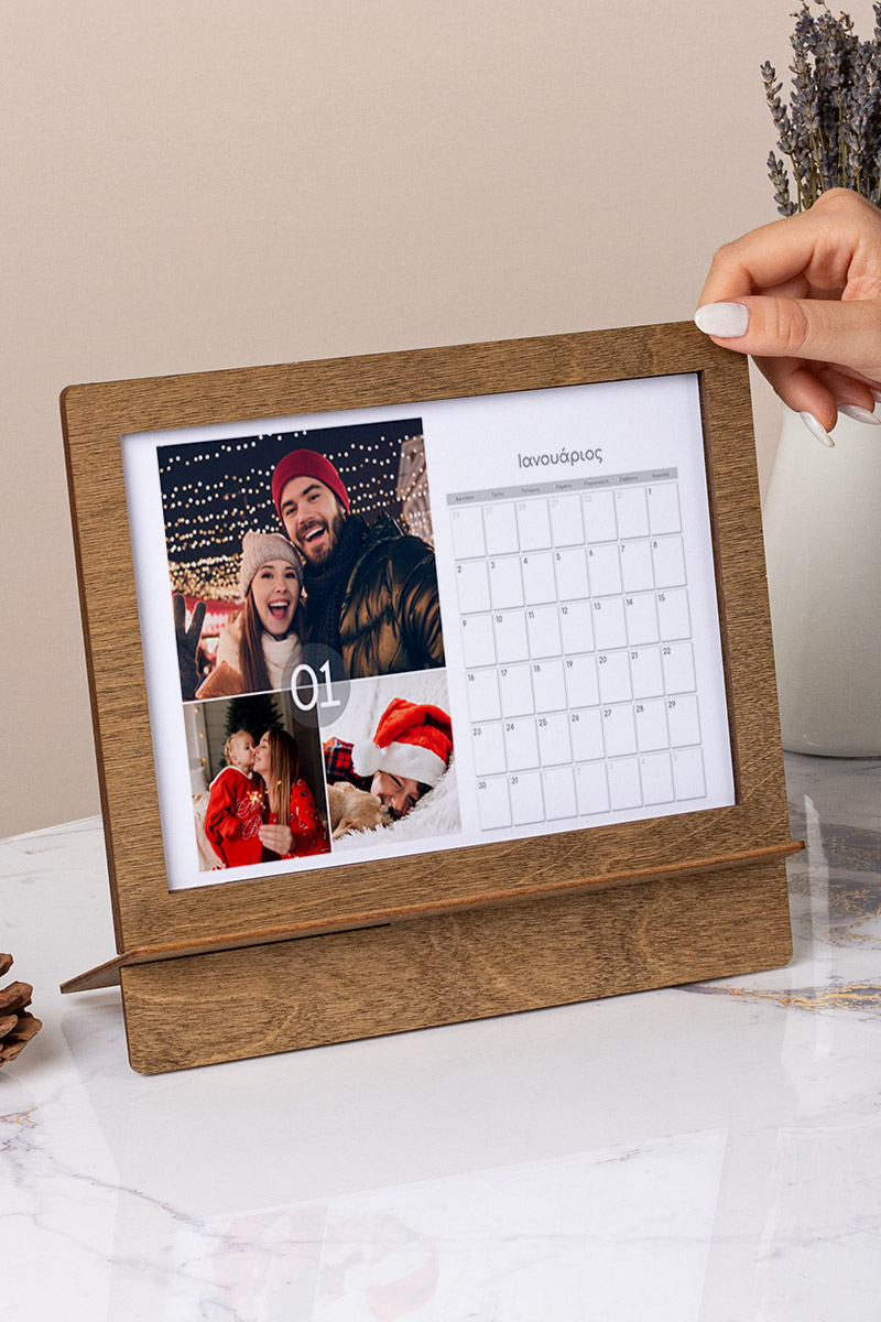 Premium Ξύλινο Επιτραπέζιο Ημερολόγιο, Dark Collage Frame