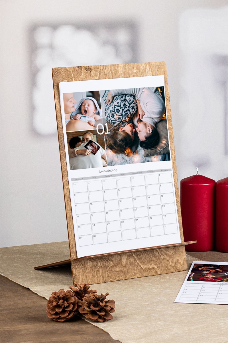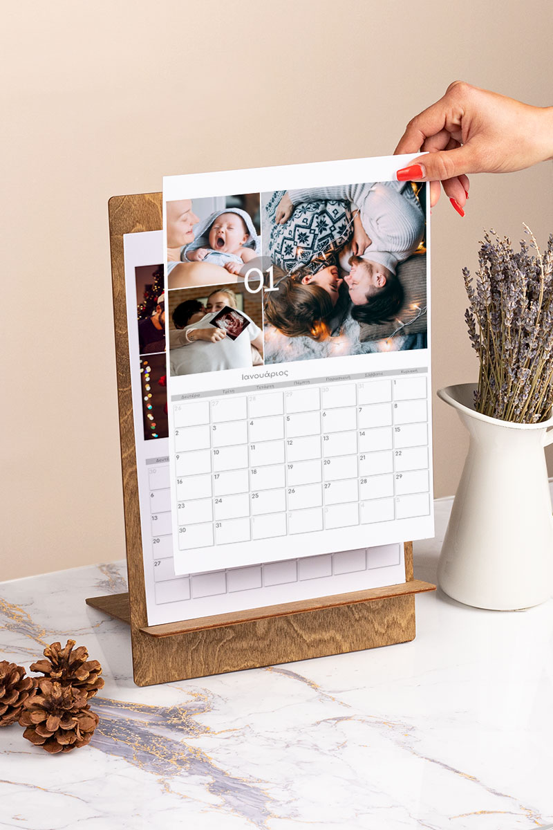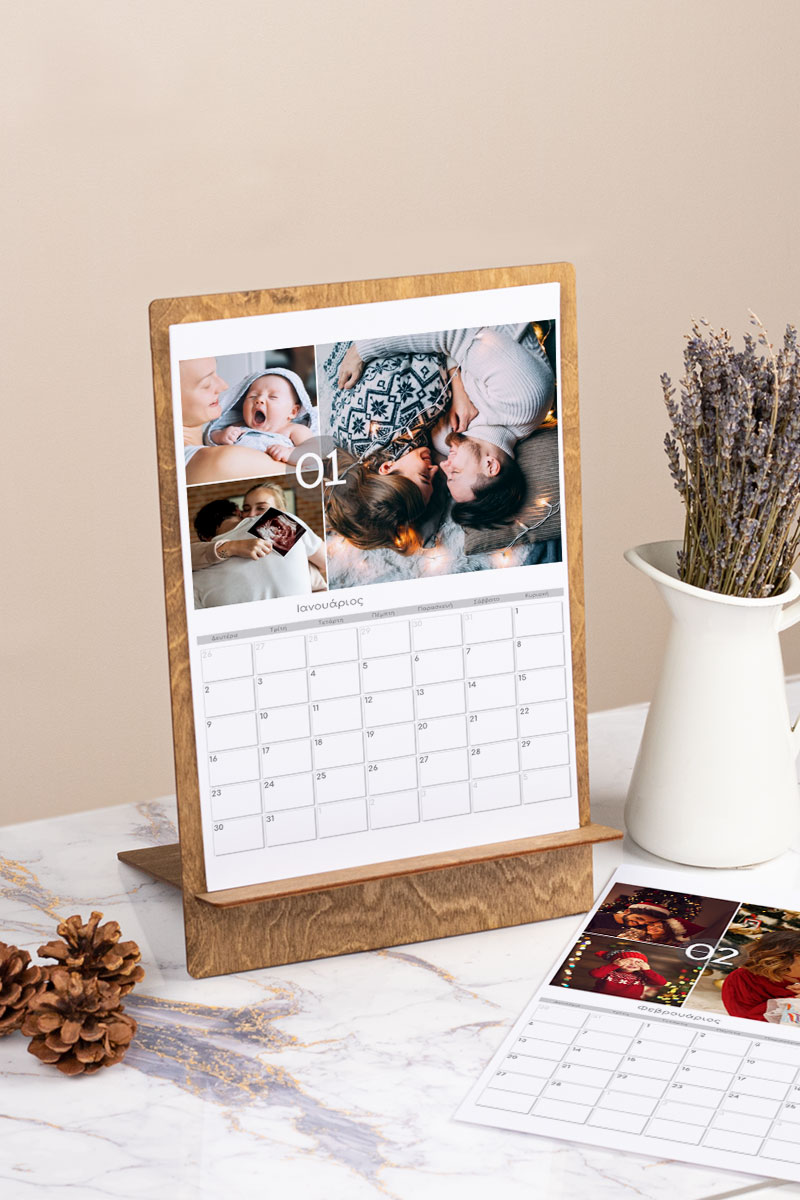 Δώδεκα μήνες γεμάτοι με τις ομορφότερες αναμνήσεις και στιγμές σας. Όπως και σε κάθε προϊόν μας, σας προσφέρουμε μία μεγάλη γκάμα πλήρως προσαρμόσιμων προτύπων ημερολογίων ώστε να τα δημιουργήσετε online. Αντλούμε έμπνευση για το σχεδιασμό από τα δημοφιλέστερα θέματα του έτους όπως τα Χριστούγεννα, τις διακοπές , την οικογένεια , τα μωρά, το Γάμο και τη Βάπτιση , τα Ρομαντικά ζευγάρια και πολλά άλλα. Απολαύστε κάθε επόμενο μήνα, καθώς περιέχει και μια διαφορετική φωτογραφία της επιλογής σας από τις ομορφότερες στιγμές σας. Θα μπορούσε να είναι ο όμορφος γάμος σας στην Αθήνα ή μια όμορφη εκδρομή σας στη Θεσσαλονίκη, εκείνη η αξέχαστη νύχτα στη Σαντορίνη ή οι διακοπές με τους φίλους σας στην Πάρο.
