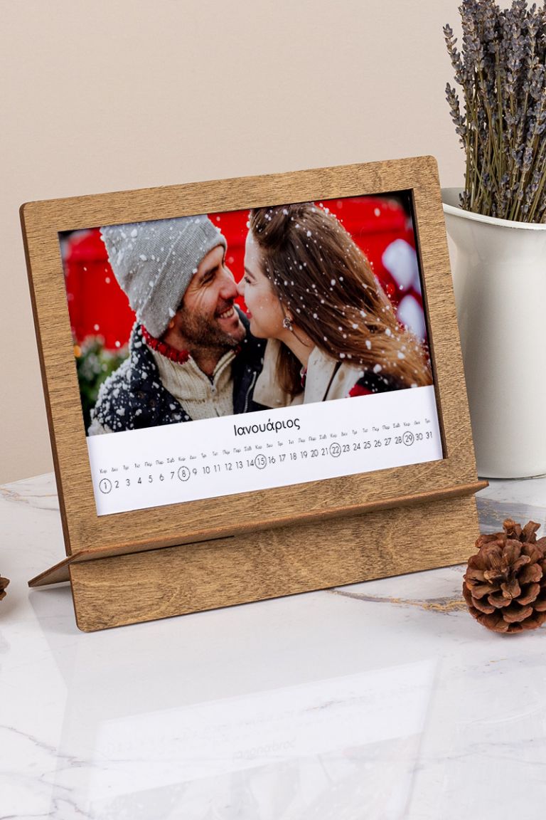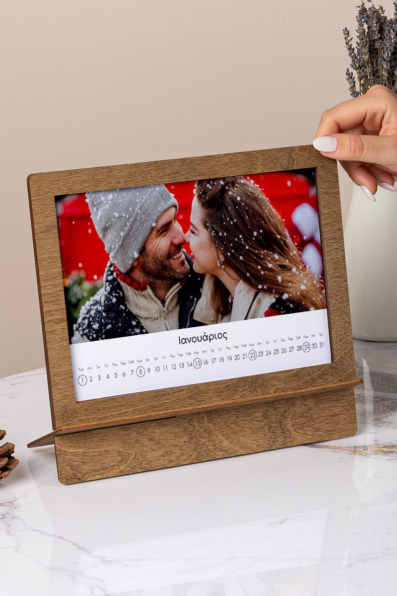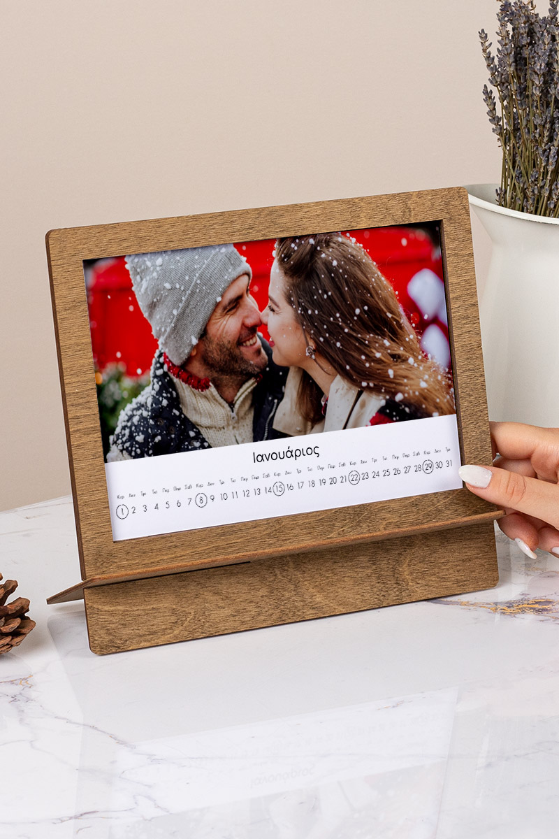 Premium Ξύλινο Επιτραπέζιο Ημερολόγιο, Dark Full Photo Frame