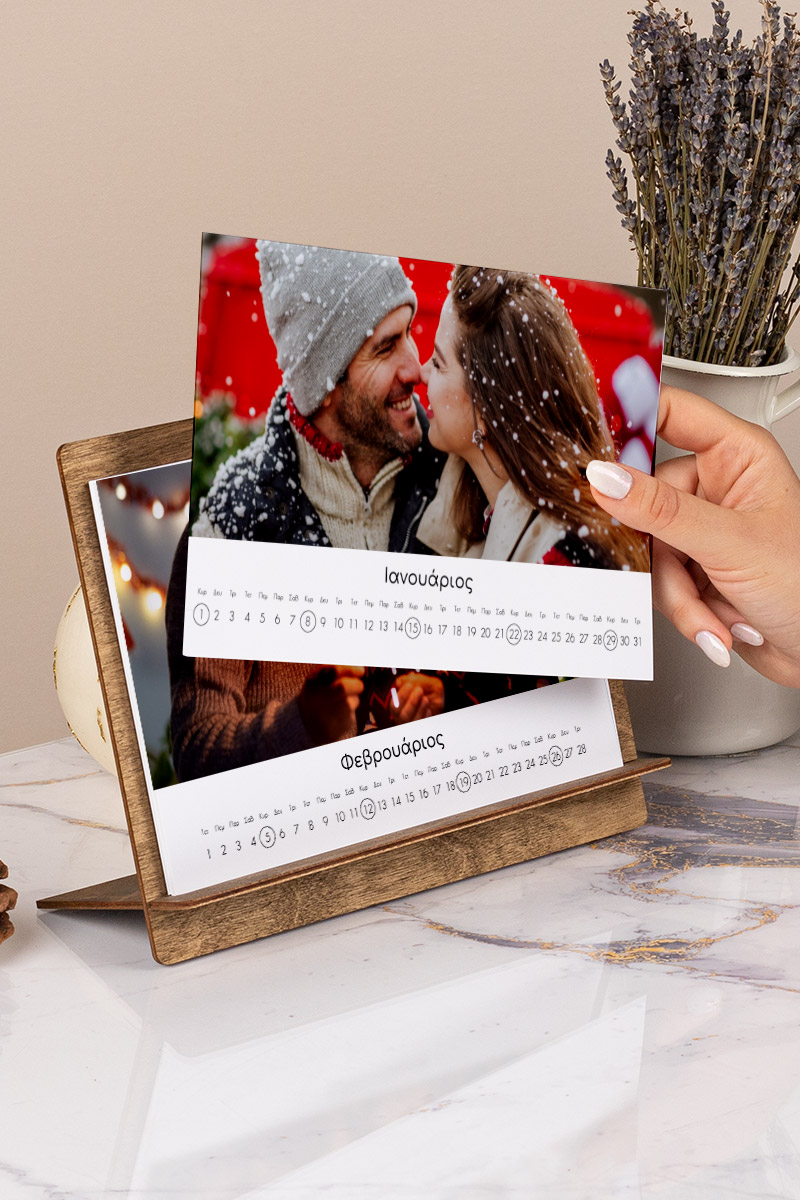 Δώδεκα μήνες γεμάτοι με τις ομορφότερες αναμνήσεις και στιγμές σας. Όπως και σε κάθε προϊόν μας, σας προσφέρουμε μία μεγάλη γκάμα πλήρως προσαρμόσιμων προτύπων ημερολογίων ώστε να τα δημιουργήσετε online. Αντλούμε έμπνευση για το σχεδιασμό από τα δημοφιλέστερα θέματα του έτους όπως τα Χριστούγεννα, τις διακοπές , την οικογένεια , τα μωρά, το Γάμο και τη Βάπτιση , τα Ρομαντικά ζευγάρια και πολλά άλλα. Απολαύστε κάθε επόμενο μήνα, καθώς περιέχει και μια διαφορετική φωτογραφία της επιλογής σας από τις ομορφότερες στιγμές σας. Θα μπορούσε να είναι ο όμορφος γάμος σας στην Αθήνα ή μια όμορφη εκδρομή σας στη Θεσσαλονίκη, εκείνη η αξέχαστη νύχτα στη Σαντορίνη ή οι διακοπές με τους φίλους σας στην Πάρο.