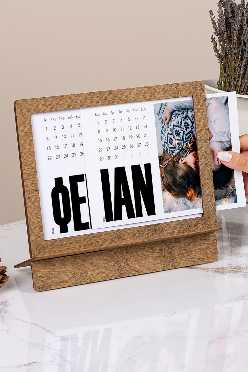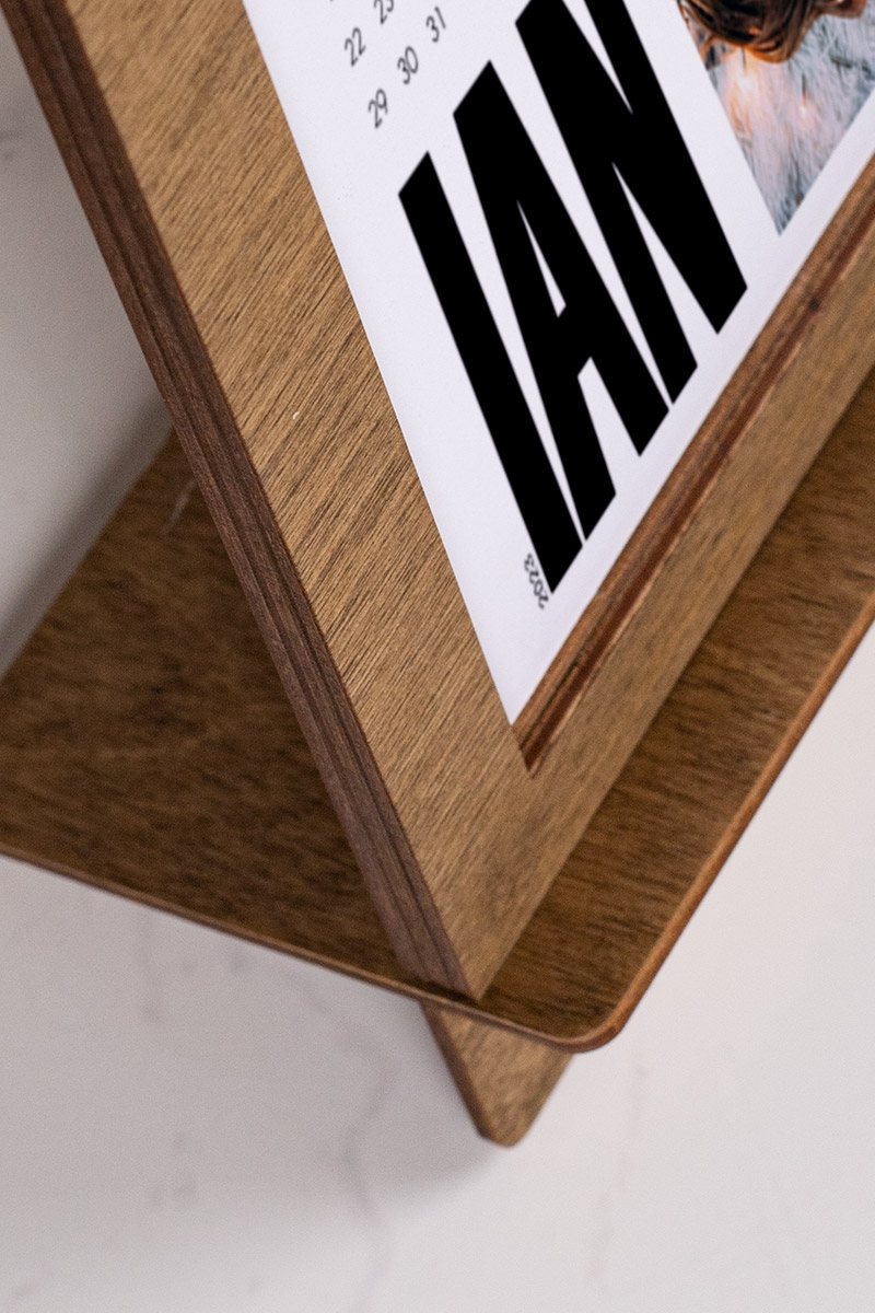 Premium Ξύλινο Επιτραπέζιο Ημερολόγιο, Dark Minimal Frame
