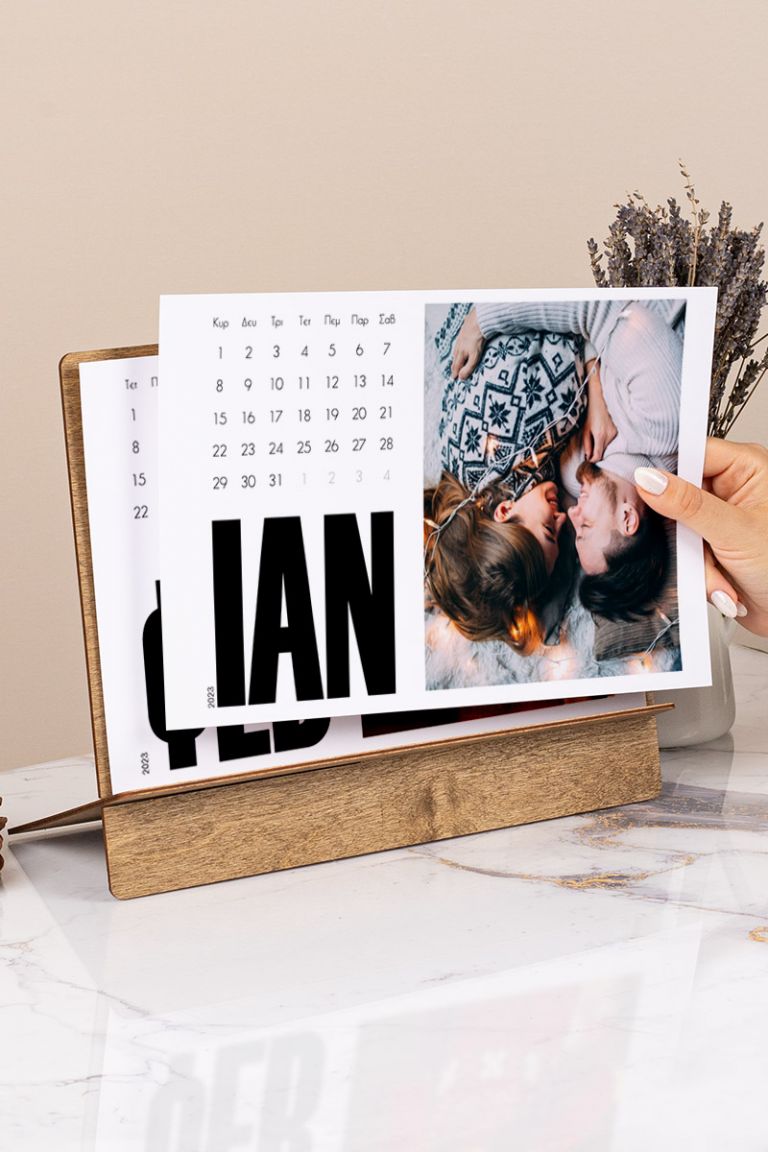 Δώδεκα μήνες γεμάτοι με τις ομορφότερες αναμνήσεις και στιγμές σας. Όπως και σε κάθε προϊόν μας, σας προσφέρουμε μία μεγάλη γκάμα πλήρως προσαρμόσιμων προτύπων ημερολογίων ώστε να τα δημιουργήσετε online. Αντλούμε έμπνευση για το σχεδιασμό από τα δημοφιλέστερα θέματα του έτους όπως τα Χριστούγεννα, τις διακοπές , την οικογένεια , τα μωρά, το Γάμο και τη Βάπτιση , τα Ρομαντικά ζευγάρια και πολλά άλλα. Απολαύστε κάθε επόμενο μήνα, καθώς περιέχει και μια διαφορετική φωτογραφία της επιλογής σας από τις ομορφότερες στιγμές σας. Θα μπορούσε να είναι ο όμορφος γάμος σας στην Αθήνα ή μια όμορφη εκδρομή σας στη Θεσσαλονίκη, εκείνη η αξέχαστη νύχτα στη Σαντορίνη ή οι διακοπές με τους φίλους σας στην Πάρο.