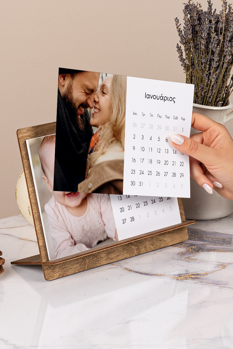 Δώδεκα μήνες γεμάτοι με τις ομορφότερες αναμνήσεις και στιγμές σας. Όπως και σε κάθε προϊόν μας, σας προσφέρουμε μία μεγάλη γκάμα πλήρως προσαρμόσιμων προτύπων ημερολογίων ώστε να τα δημιουργήσετε online. Αντλούμε έμπνευση για το σχεδιασμό από τα δημοφιλέστερα θέματα του έτους όπως τα Χριστούγεννα, τις διακοπές , την οικογένεια , τα μωρά, το Γάμο και τη Βάπτιση , τα Ρομαντικά ζευγάρια και πολλά άλλα. Απολαύστε κάθε επόμενο μήνα, καθώς περιέχει και μια διαφορετική φωτογραφία της επιλογής σας από τις ομορφότερες στιγμές σας. Θα μπορούσε να είναι ο όμορφος γάμος σας στην Αθήνα ή μια όμορφη εκδρομή σας στη Θεσσαλονίκη, εκείνη η αξέχαστη νύχτα στη Σαντορίνη ή οι διακοπές με τους φίλους σας στην Πάρο.