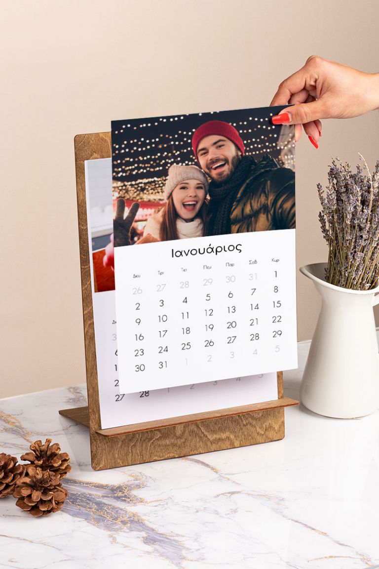Δώδεκα μήνες γεμάτοι με τις ομορφότερες αναμνήσεις και στιγμές σας. Όπως και σε κάθε προϊόν μας, σας προσφέρουμε μία μεγάλη γκάμα πλήρως προσαρμόσιμων προτύπων ημερολογίων ώστε να τα δημιουργήσετε online. Αντλούμε έμπνευση για το σχεδιασμό από τα δημοφιλέστερα θέματα του έτους όπως τα Χριστούγεννα, τις διακοπές , την οικογένεια , τα μωρά, το Γάμο και τη Βάπτιση , τα Ρομαντικά ζευγάρια και πολλά άλλα. Απολαύστε κάθε επόμενο μήνα, καθώς περιέχει και μια διαφορετική φωτογραφία της επιλογής σας από τις ομορφότερες στιγμές σας. Θα μπορούσε να είναι ο όμορφος γάμος σας στην Αθήνα ή μια όμορφη εκδρομή σας στη Θεσσαλονίκη, εκείνη η αξέχαστη νύχτα στη Σαντορίνη ή οι διακοπές με τους φίλους σας στην Πάρο.