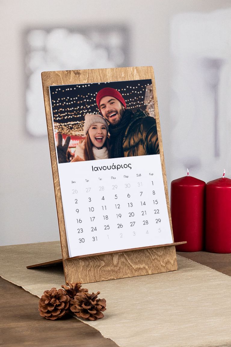 Premium Ξύλινο Επιτραπέζιο Ημερολόγιο, Dark Style Portrait
