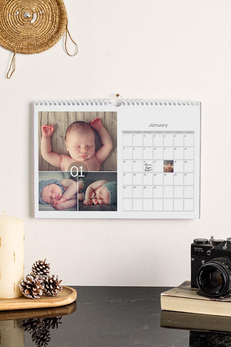 Δώδεκα μήνες γεμάτοι με τις ομορφότερες αναμνήσεις και στιγμές σας. Όπως και σε κάθε προϊόν μας, σας προσφέρουμε μία μεγάλη γκάμα πλήρως προσαρμόσιμων προτύπων ημερολογίων ώστε να τα δημιουργήσετε online. Αντλούμε έμπνευση για το σχεδιασμό από τα δημοφιλέστερα θέματα του έτους όπως τα Χριστούγεννα, τις διακοπές , την οικογένεια , τα μωρά, το Γάμο και τη Βάπτιση , τα Ρομαντικά ζευγάρια και πολλά άλλα. Απολαύστε κάθε επόμενο μήνα, καθώς περιέχει και μια διαφορετική φωτογραφία της επιλογής σας από τις ομορφότερες στιγμές σας. Θα μπορούσε να είναι ο όμορφος γάμος σας στην Αθήνα ή μια όμορφη εκδρομή σας στη Θεσσαλονίκη, εκείνη η αξέχαστη νύχτα στη Σαντορίνη ή οι διακοπές με τους φίλους σας στην Πάρο.