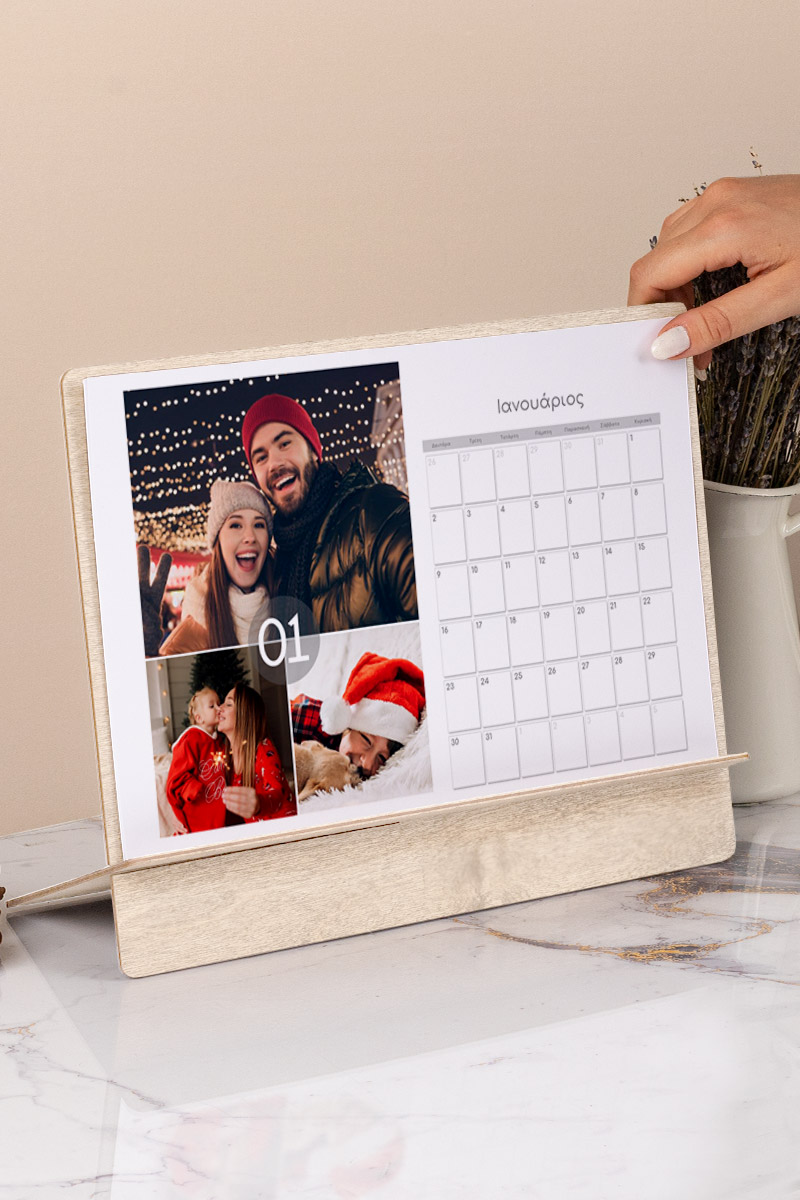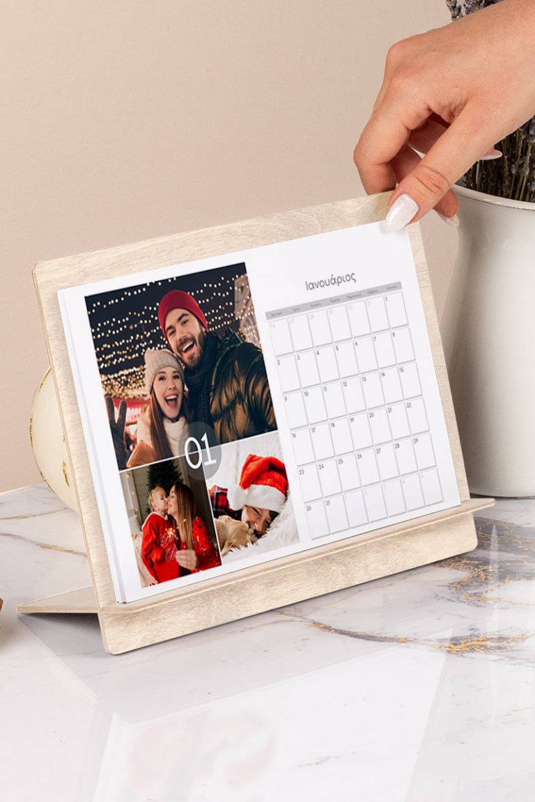 Δώδεκα μήνες γεμάτοι με τις ομορφότερες αναμνήσεις και στιγμές σας. Όπως και σε κάθε προϊόν μας, σας προσφέρουμε μία μεγάλη γκάμα πλήρως προσαρμόσιμων προτύπων ημερολογίων ώστε να τα δημιουργήσετε online. Αντλούμε έμπνευση για το σχεδιασμό από τα δημοφιλέστερα θέματα του έτους όπως τα Χριστούγεννα, τις διακοπές , την οικογένεια , τα μωρά, το Γάμο και τη Βάπτιση , τα Ρομαντικά ζευγάρια και πολλά άλλα. Απολαύστε κάθε επόμενο μήνα, καθώς περιέχει και μια διαφορετική φωτογραφία της επιλογής σας από τις ομορφότερες στιγμές σας. Θα μπορούσε να είναι ο όμορφος γάμος σας στην Αθήνα ή μια όμορφη εκδρομή σας στη Θεσσαλονίκη, εκείνη η αξέχαστη νύχτα στη Σαντορίνη ή οι διακοπές με τους φίλους σας στην Πάρο.