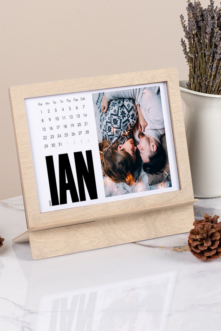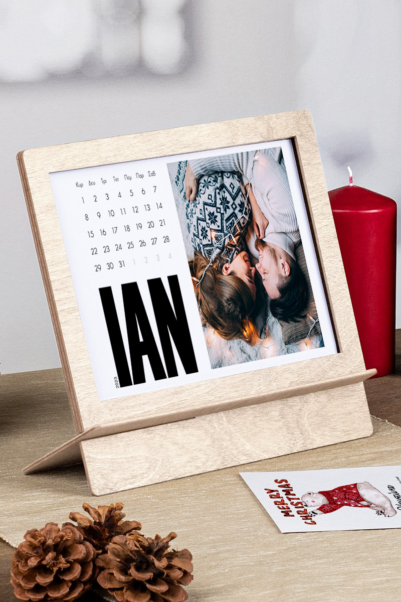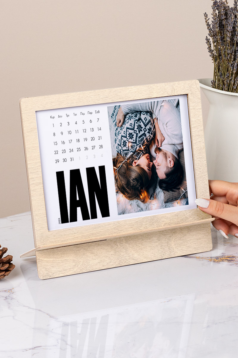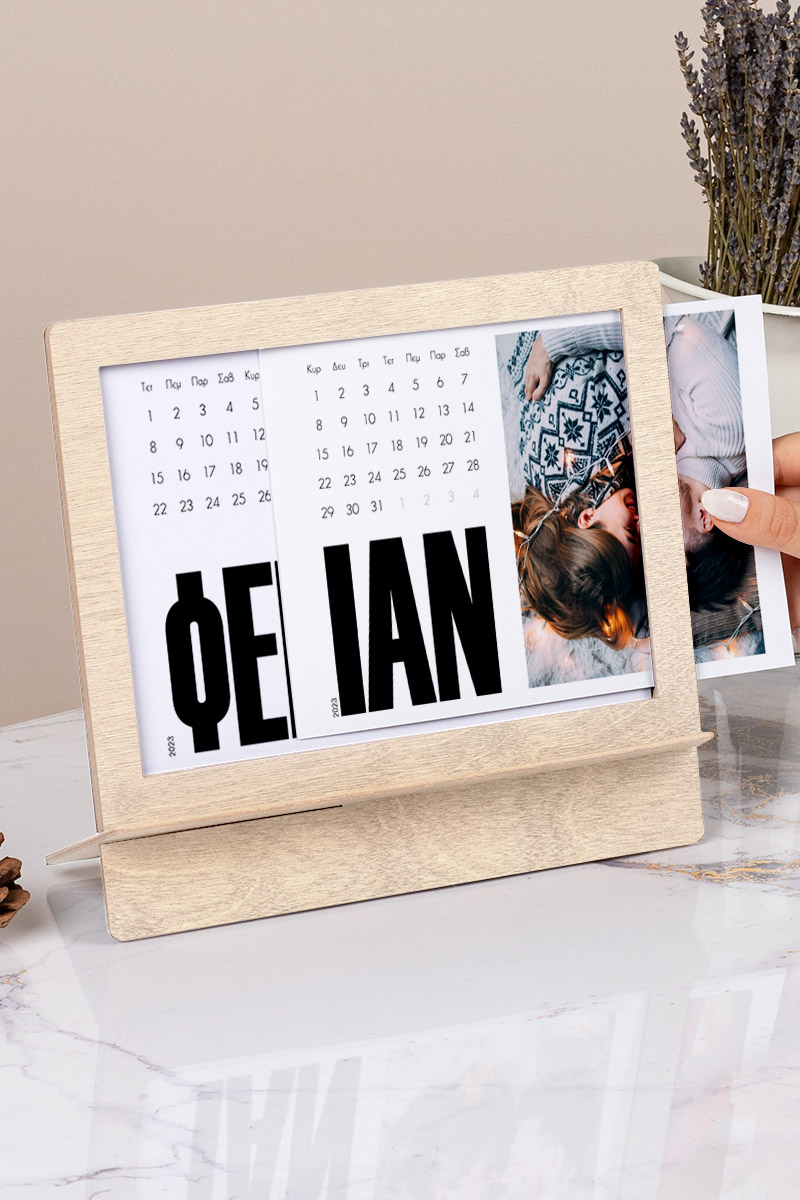 Premium Ξύλινο Επιτραπέζιο Ημερολόγιο, Natural Minimal Frame