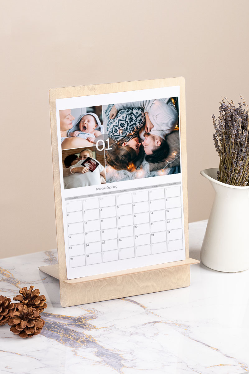 Premium Ξύλινο Επιτραπέζιο Ημερολόγιο, Natural Collage Portrait