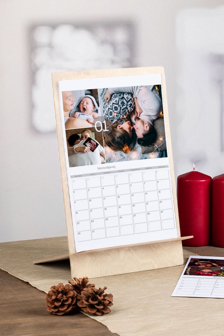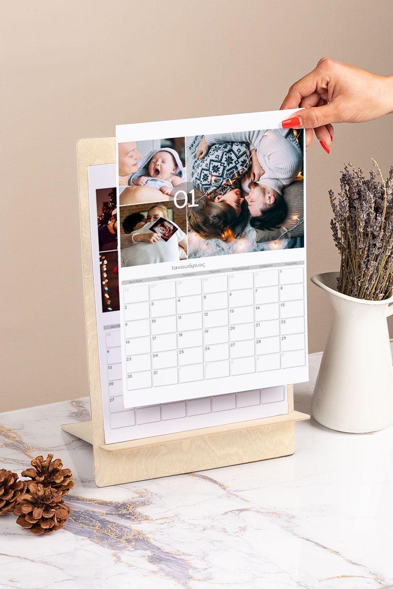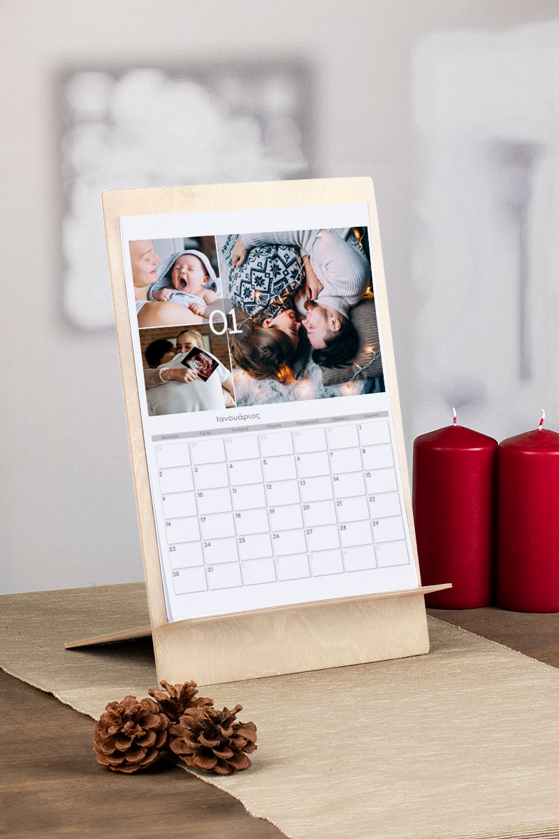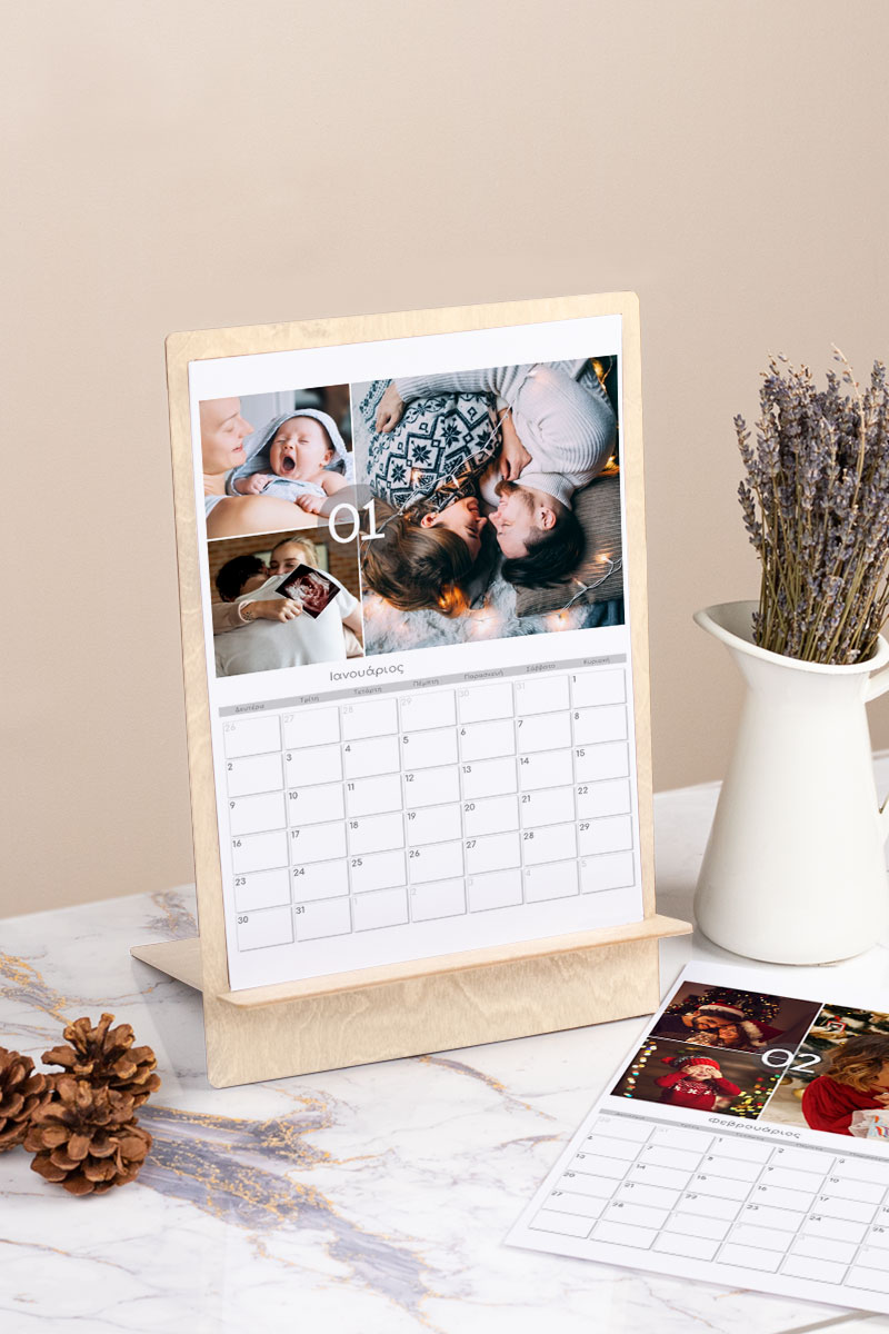 Δώδεκα μήνες γεμάτοι με τις ομορφότερες αναμνήσεις και στιγμές σας. Όπως και σε κάθε προϊόν μας, σας προσφέρουμε μία μεγάλη γκάμα πλήρως προσαρμόσιμων προτύπων ημερολογίων ώστε να τα δημιουργήσετε online. Αντλούμε έμπνευση για το σχεδιασμό από τα δημοφιλέστερα θέματα του έτους όπως τα Χριστούγεννα, τις διακοπές , την οικογένεια , τα μωρά, το Γάμο και τη Βάπτιση , τα Ρομαντικά ζευγάρια και πολλά άλλα. Απολαύστε κάθε επόμενο μήνα, καθώς περιέχει και μια διαφορετική φωτογραφία της επιλογής σας από τις ομορφότερες στιγμές σας. Θα μπορούσε να είναι ο όμορφος γάμος σας στην Αθήνα ή μια όμορφη εκδρομή σας στη Θεσσαλονίκη, εκείνη η αξέχαστη νύχτα στη Σαντορίνη ή οι διακοπές με τους φίλους σας στην Πάρο.
