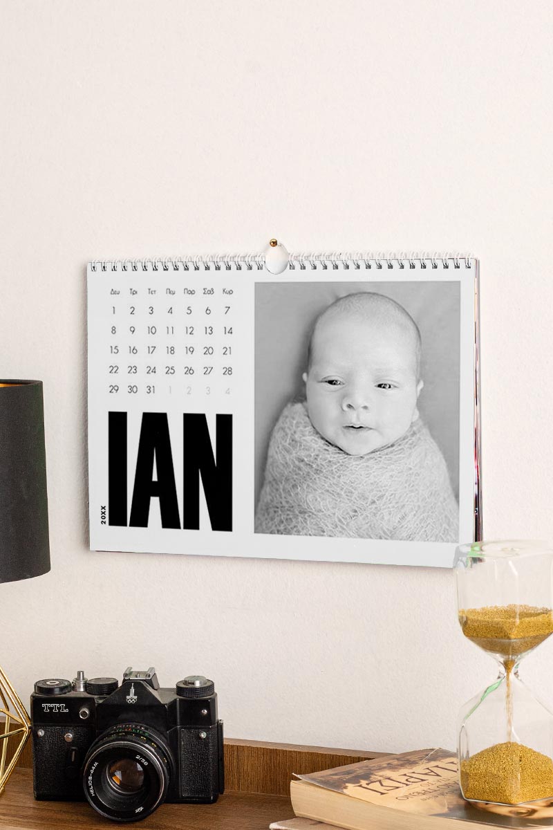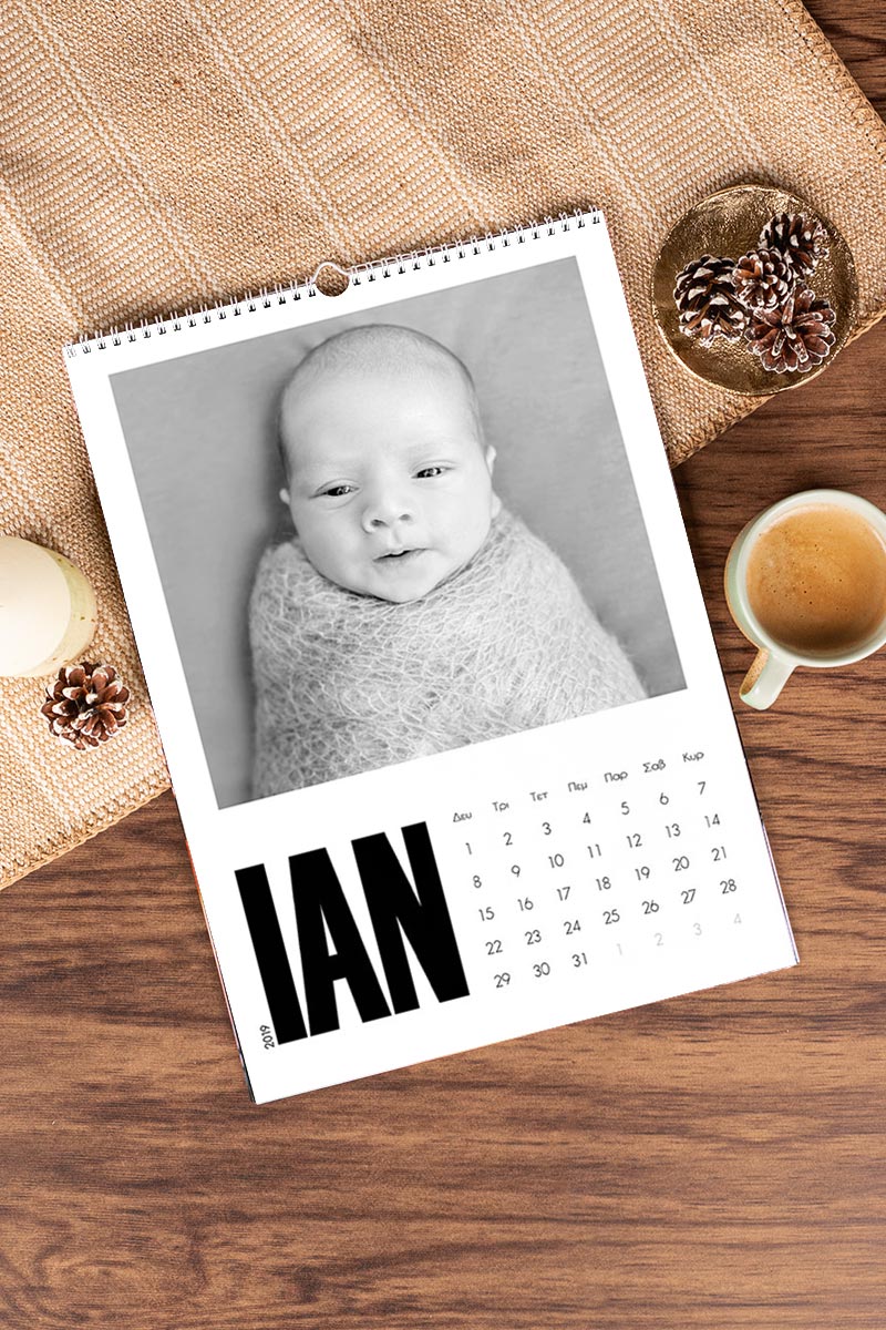Δώδεκα μήνες γεμάτοι με τις ομορφότερες αναμνήσεις και στιγμές σας. Όπως και σε κάθε προϊόν μας, σας προσφέρουμε μία μεγάλη γκάμα πλήρως προσαρμόσιμων προτύπων ημερολογίων ώστε να τα δημιουργήσετε online. Αντλούμε έμπνευση για το σχεδιασμό από τα δημοφιλέστερα θέματα του έτους όπως τα Χριστούγεννα, τις διακοπές , την οικογένεια , τα μωρά, το Γάμο και τη Βάπτιση , τα Ρομαντικά ζευγάρια και πολλά άλλα. Απολαύστε κάθε επόμενο μήνα, καθώς περιέχει και μια διαφορετική φωτογραφία της επιλογής σας από τις ομορφότερες στιγμές σας. Θα μπορούσε να είναι ο όμορφος γάμος σας στην Αθήνα ή μια όμορφη εκδρομή σας στη Θεσσαλονίκη, εκείνη η αξέχαστη νύχτα στη Σαντορίνη ή οι διακοπές με τους φίλους σας στην Πάρο.