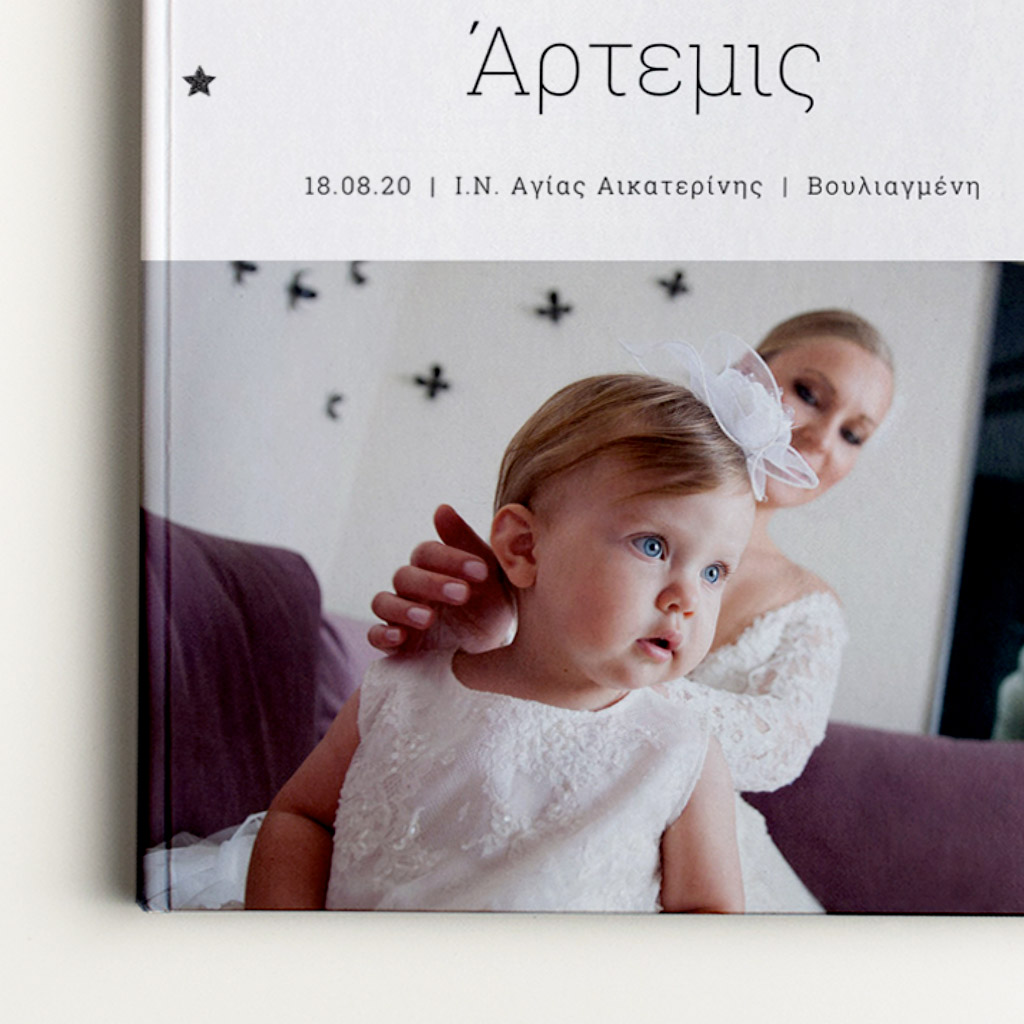 Δημιουργήστε online το άλμπουμ της Βάπτισης του μωρού σας, γεμάτο με τις πιο πολύτιμες φωτογραφίες του. Επιλέξτε από πληθώρα μεγεθών, προτύπων σελίδων, φόντων, εξώφυλλων, βελτιώσετε την ποιότητα των φωτογραφιών σας, προσθέσετε κείμενα & γραφικά και σχεδιάστε το φωτογραφικό σας άλμπουμ με όποιον τρόπο εσείς επιθυμείτε.