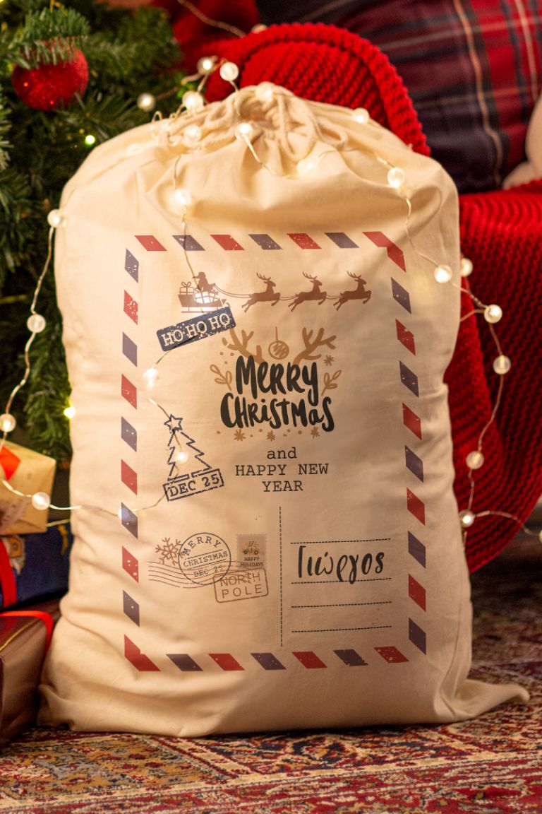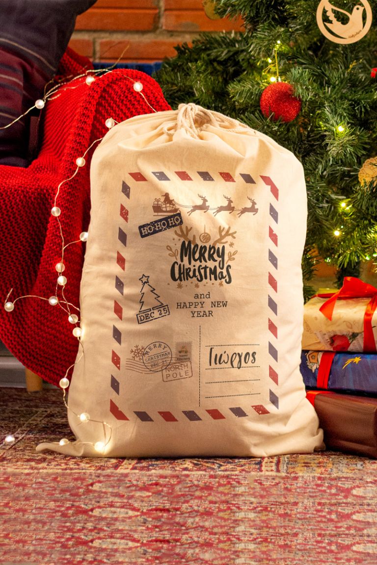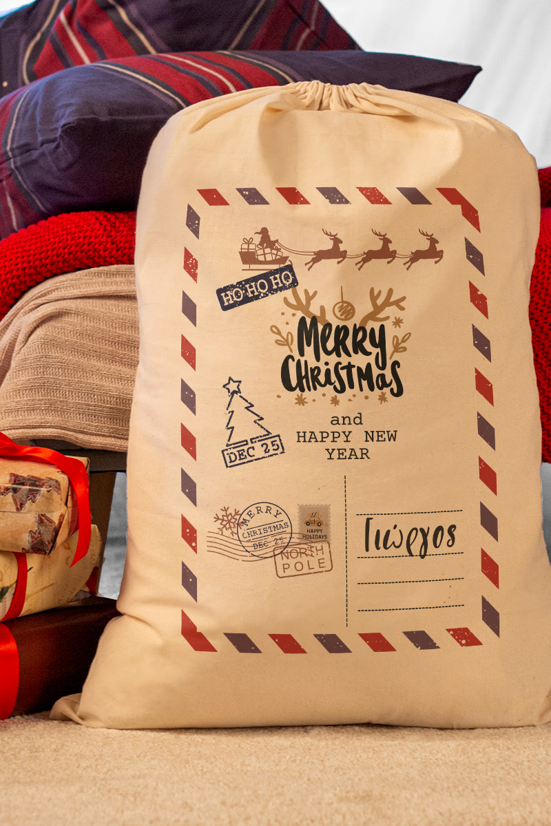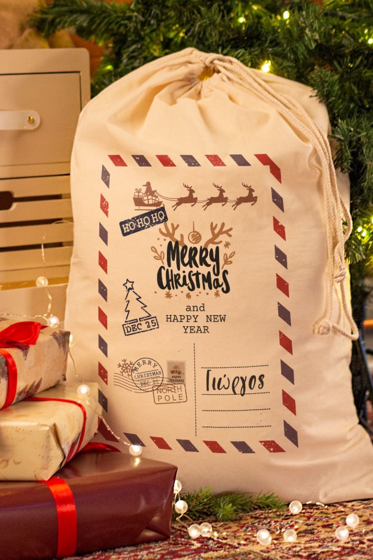 Χριστουγεννιάτικος Σάκος Δώρων Αϊ-Βασίλη με Σχέδιο Merry Xmas