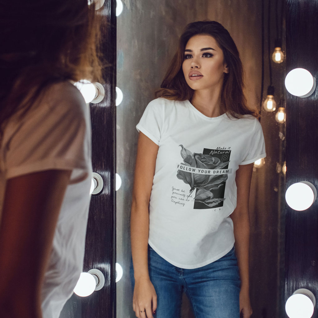 Ποιότητα & Γραμμή Μπλούζας: 100% οργανικό βαμβάκι εξαιρετικής ποιότητας. Κανονική γραμμή t-shirt.
