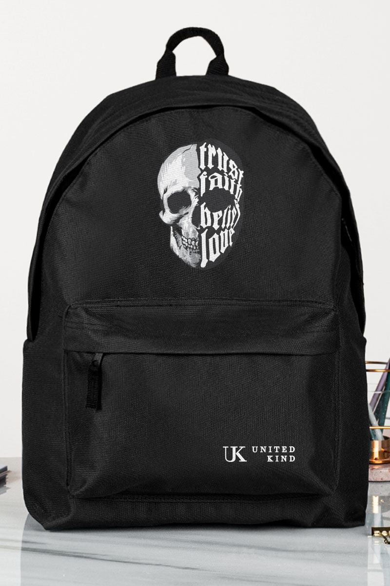 Σχολική Τσάντα Δημοτικού-Γυμνασίου-Λυκείου, Μαύρο Χρώμα,Cool Skull