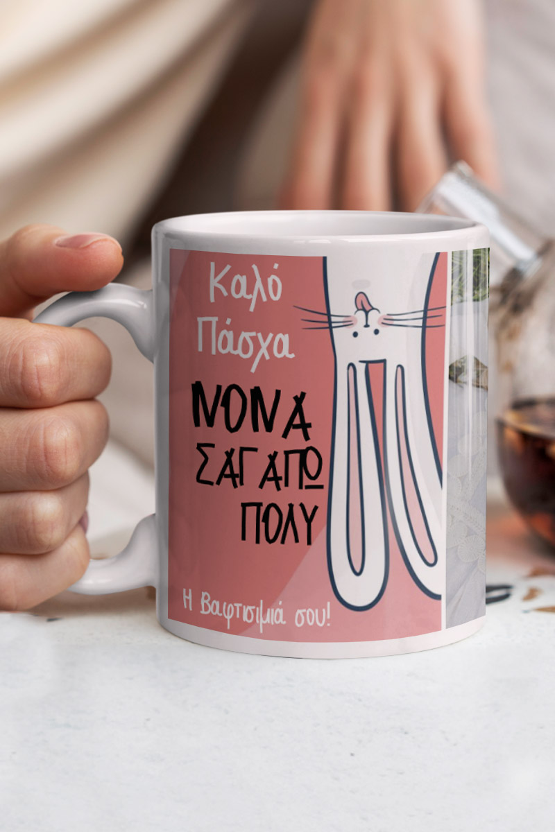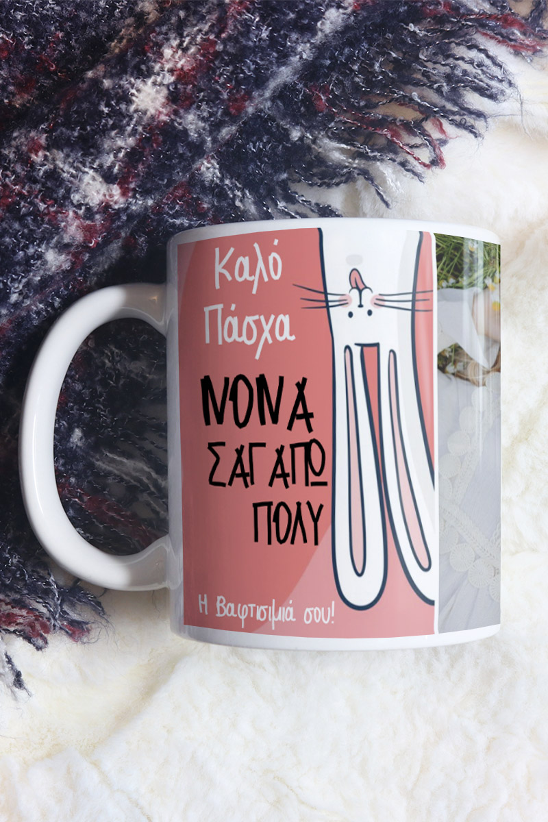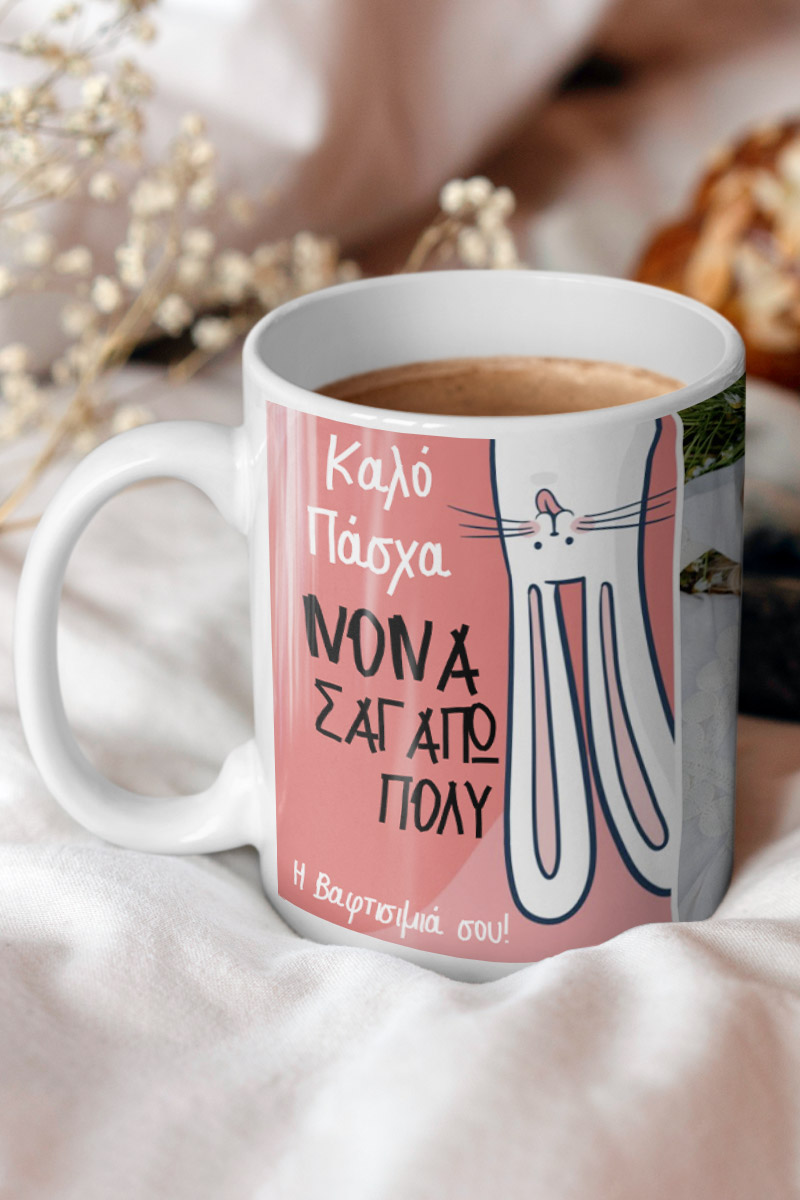 Εάν ψάχνετε ένα μοναδικό πασχαλινό δώρο, για την νονά , τον νονό , την θεία , τον θείο , την γιαγιά ή τον παππού  δημιουργήστε και χαρίστε του μία προσωποποιημένη κούπα & λάβετε πίσω τον ενθουσιασμό και την αγάπη του! Όποιος κι αν είναι ο αποδέκτης θα λατρέψει την ιδέα του ότι δημιουργήσατε κάτι μοναδικό, αποκλειστικά γι΄ αυτόν !