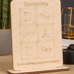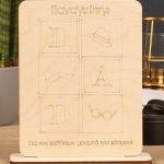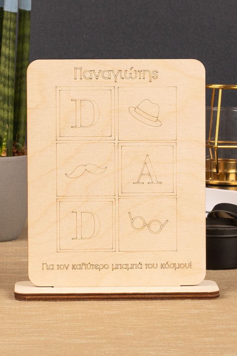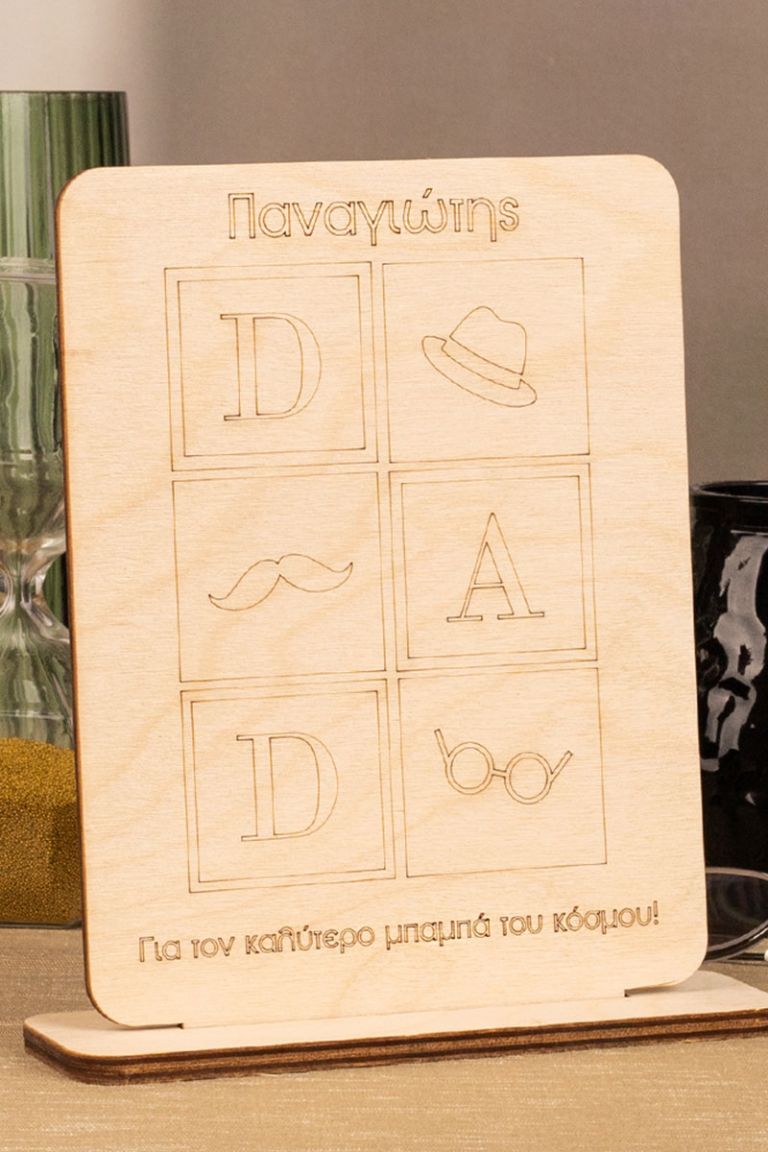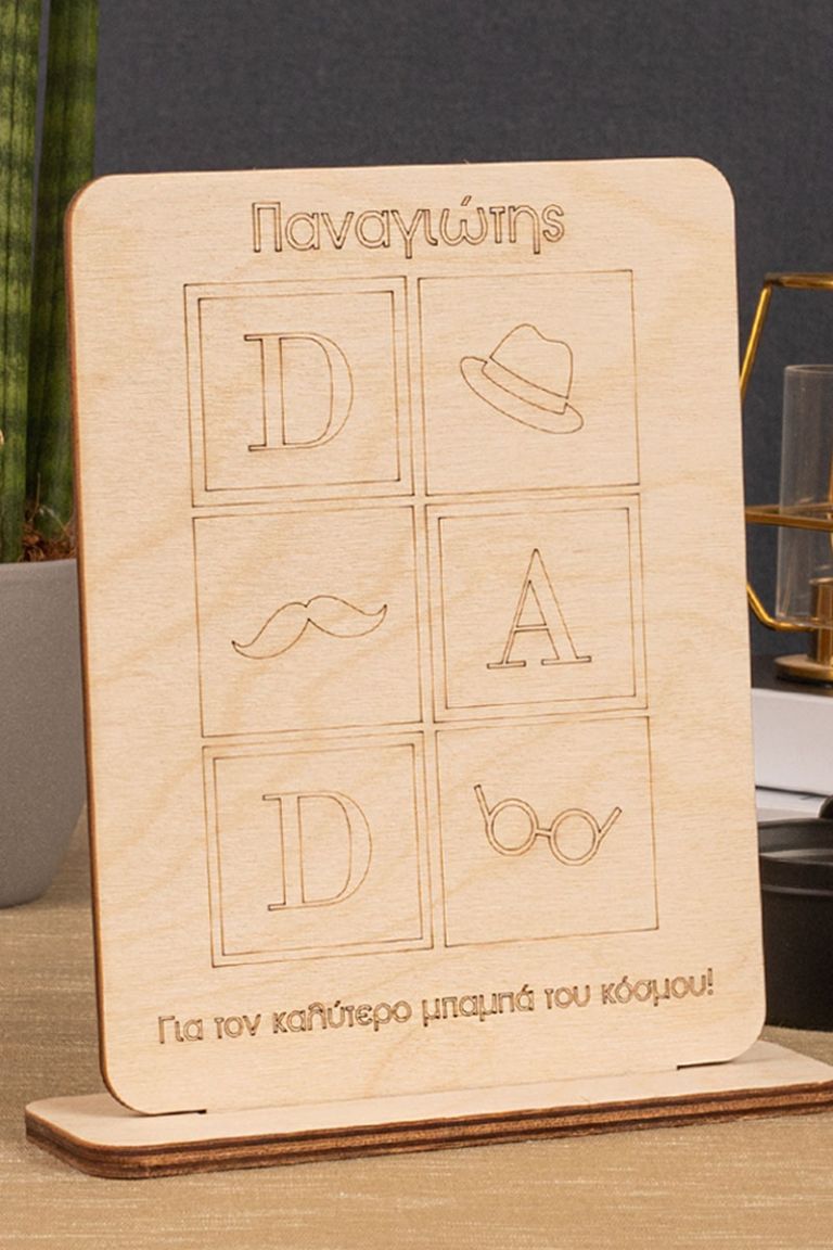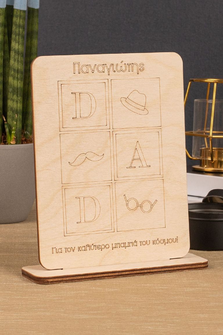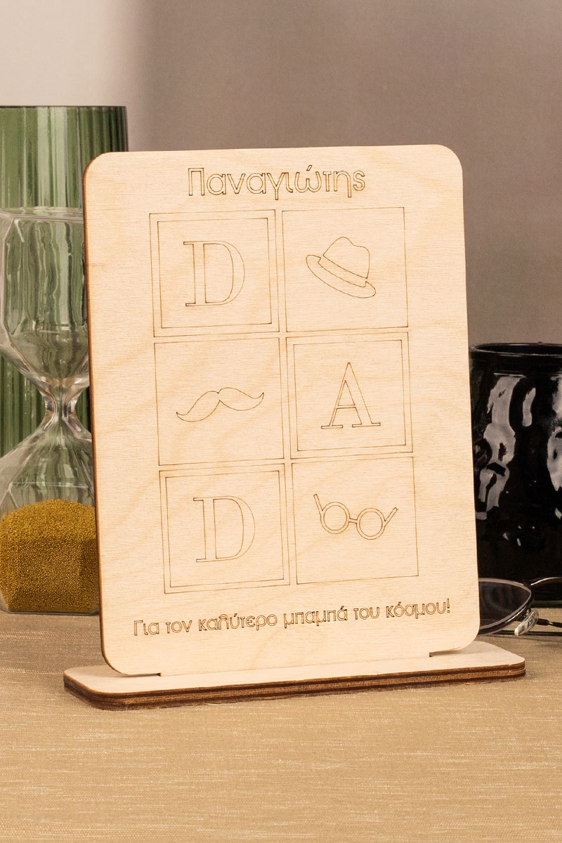 Ξύλινο επιτραπέζιο διακοσμητικό με εκτύπωση ή χάραξη.