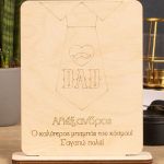 Ξύλινο επιτραπέζιο διακοσμητικό με εκτύπωση ή χάραξη.