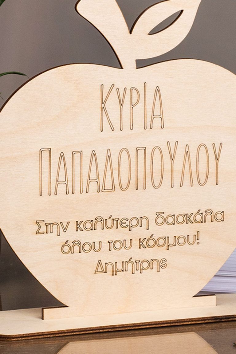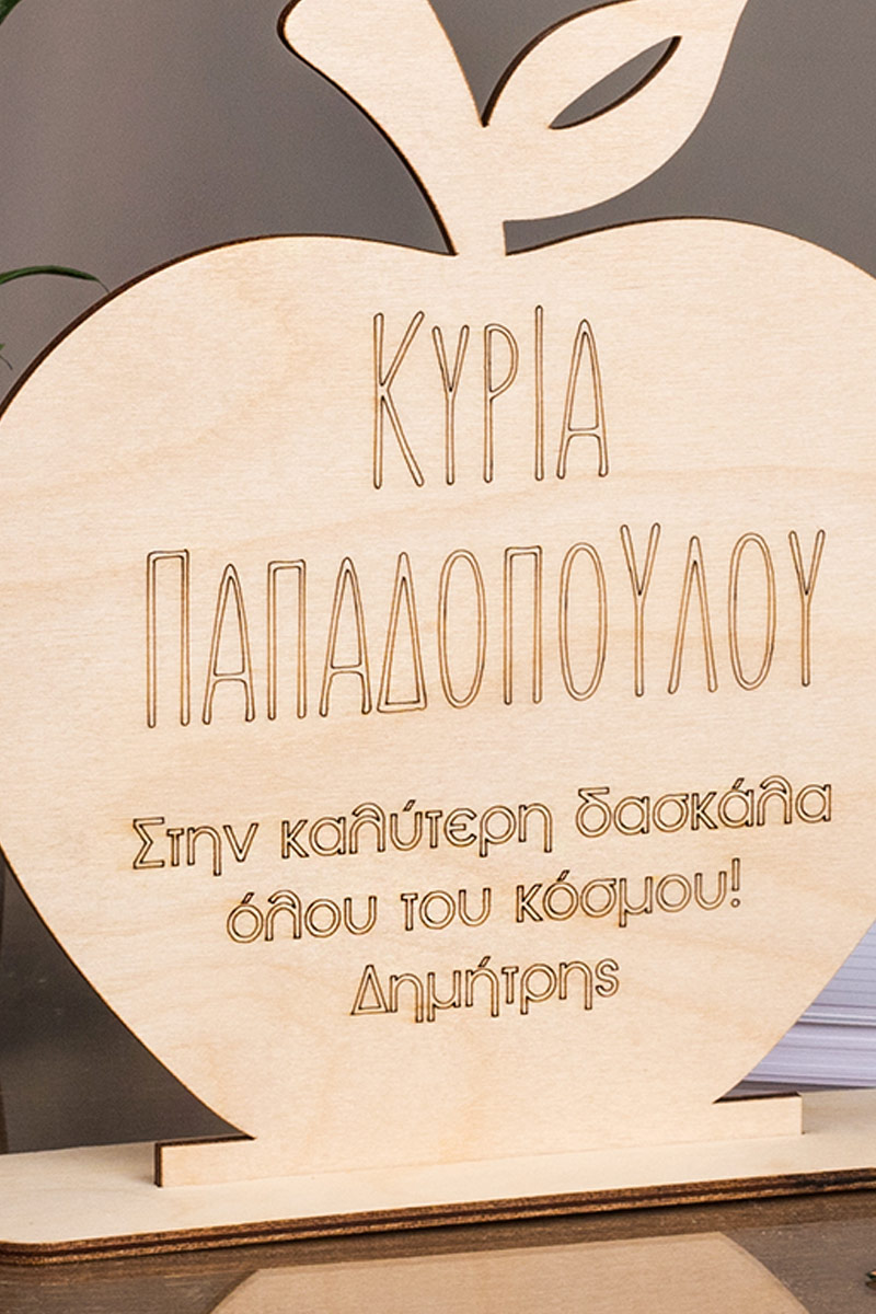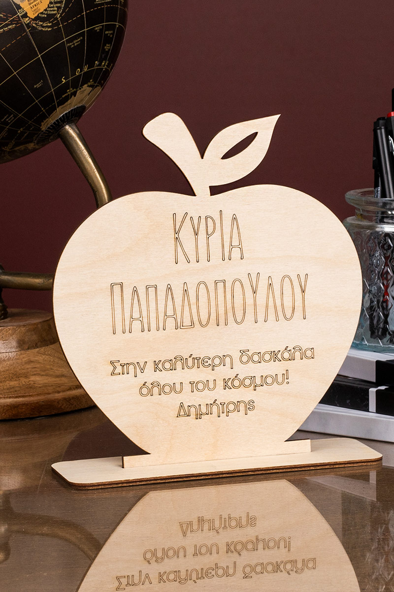 Ξύλινο επιτραπέζιο διακοσμητικό με εκτύπωση ή χάραξη.