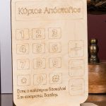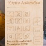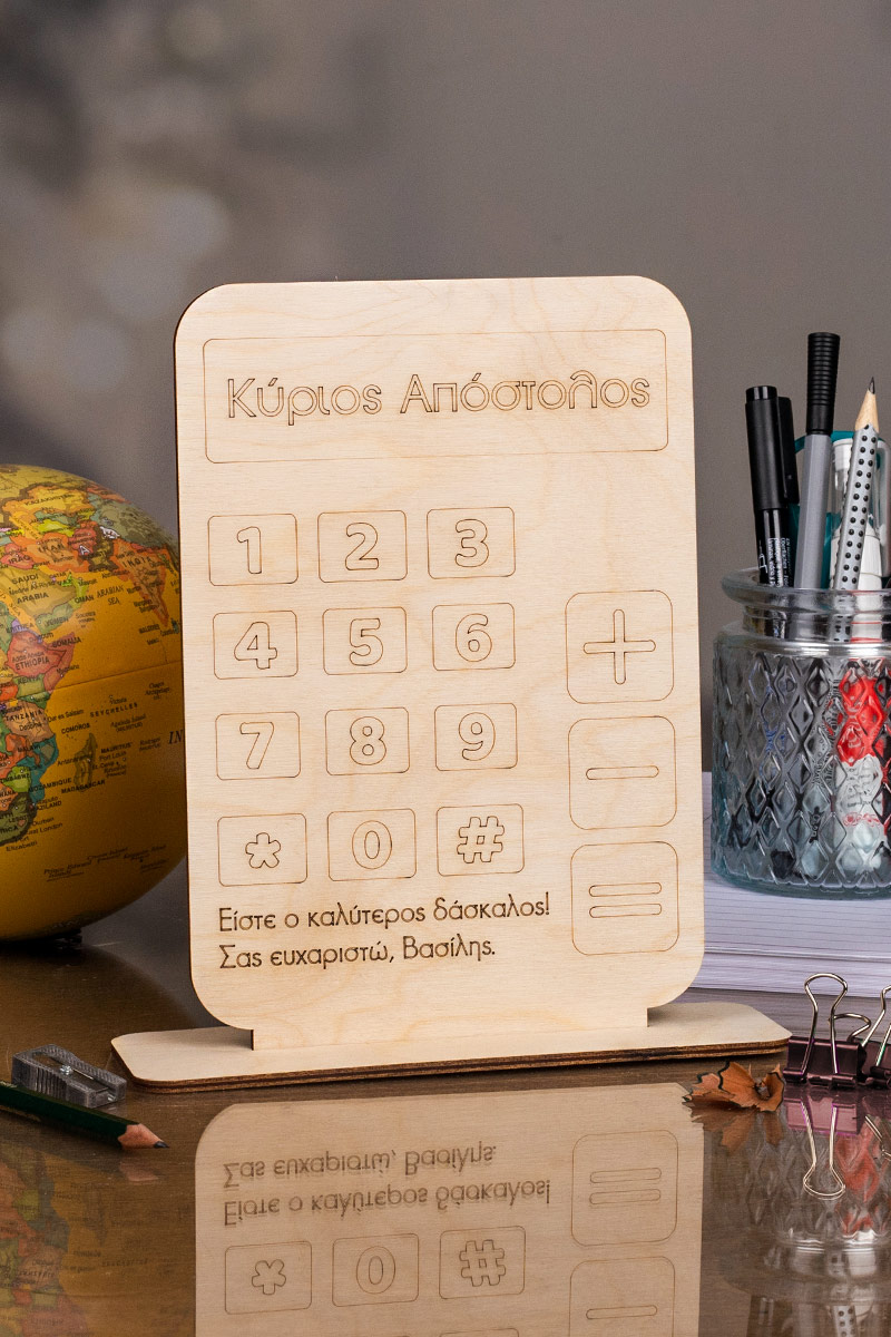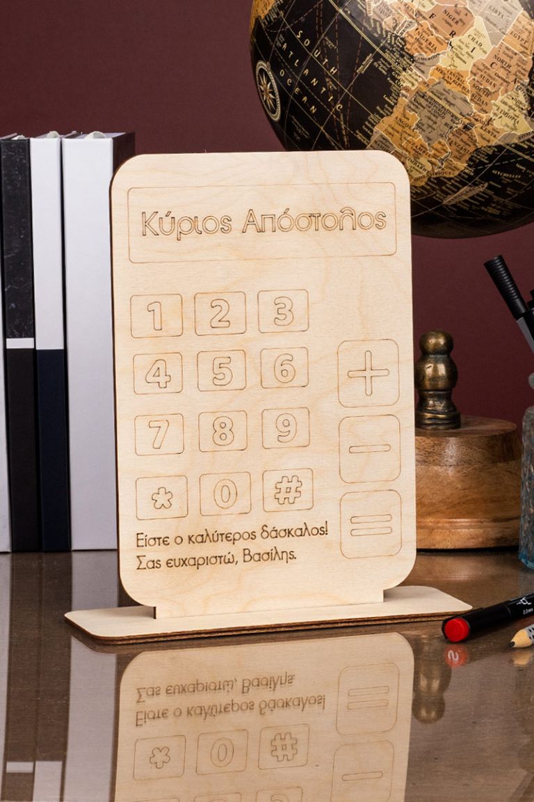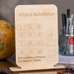 Ξύλινο επιτραπέζιο διακοσμητικό με εκτύπωση ή χάραξη.
