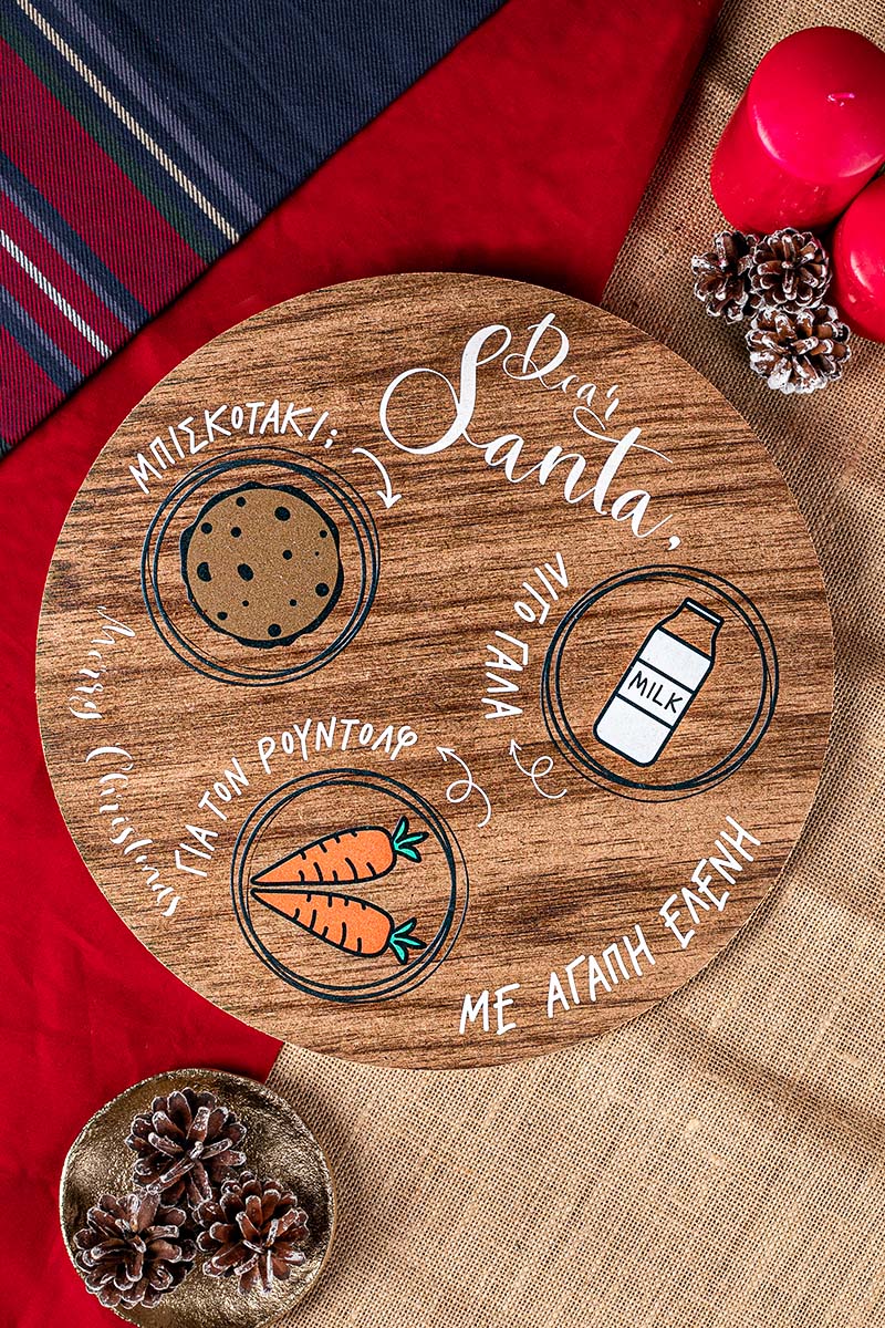 Χαρίστε στο παιδί σας, στο εγγόνι, στο βαπτιστήρι μοναδικές αναμνήσεις με έναν προσωποποιημένο δίσκο σερβιρίσματος Αγίου Βασίλη.