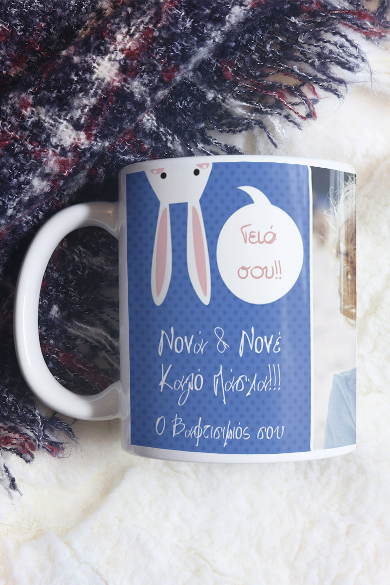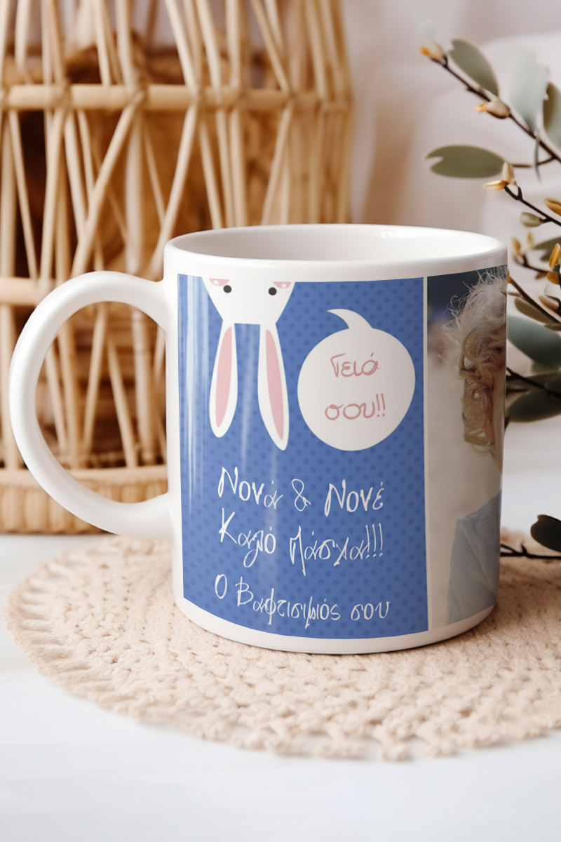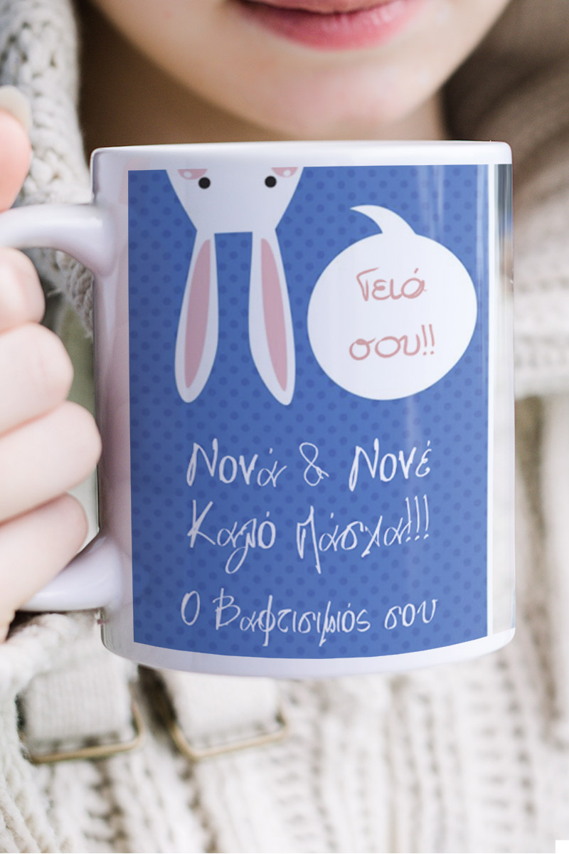 Εάν ψάχνετε ένα μοναδικό πασχαλινό δώρο, για την νονά , τον νονό , την θεία , τον θείο , την γιαγιά ή τον παππού  δημιουργήστε και χαρίστε του μία προσωποποιημένη κούπα & λάβετε πίσω τον ενθουσιασμό και την αγάπη του! Όποιος κι αν είναι ο αποδέκτης θα λατρέψει την ιδέα του ότι δημιουργήσατε κάτι μοναδικό, αποκλειστικά γι΄ αυτόν !