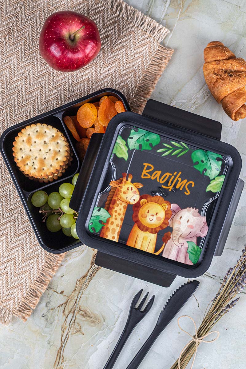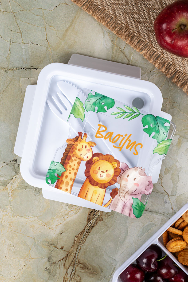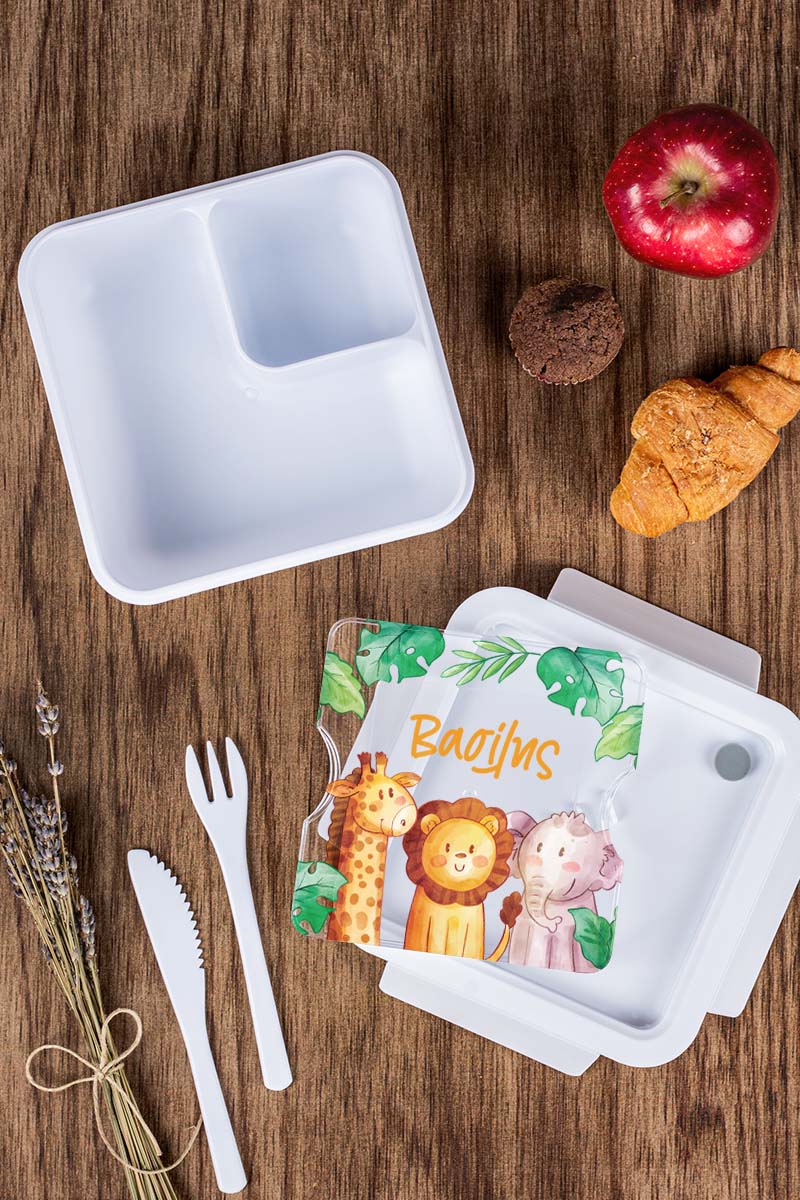 Δοχείο Φαγητού με Χώρισμα & το Όνομα του Παιδιού, Animal Friends