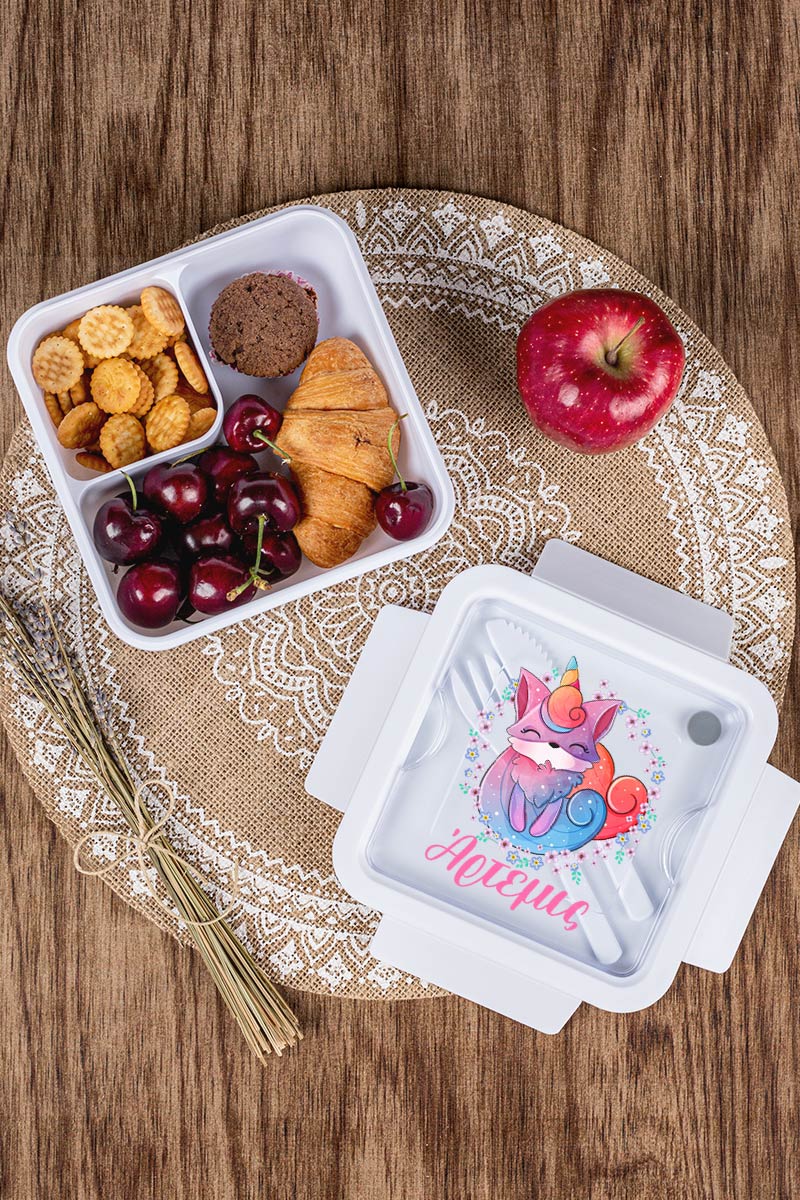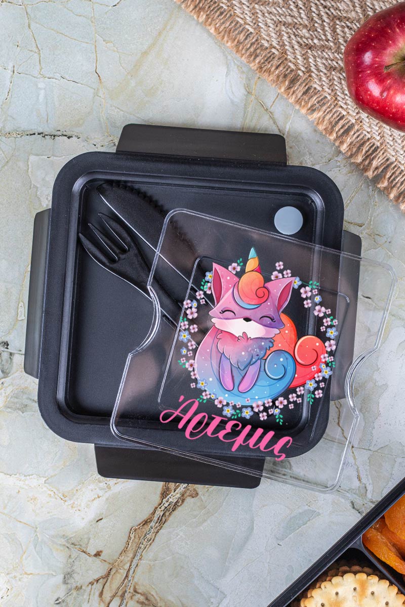 Δοχείο Φαγητού με Χώρισμα & το Όνομα του Παιδιού, Cute Fox