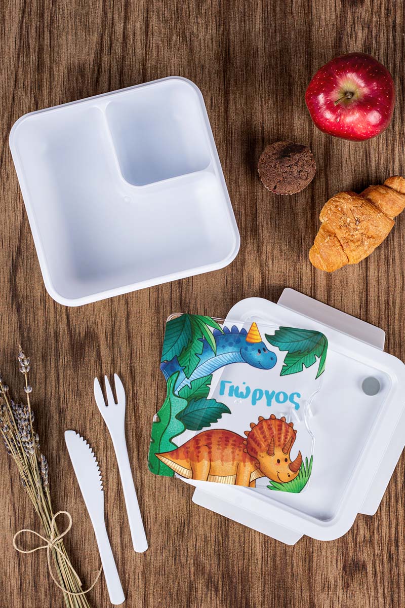 Δοχείο Φαγητού με Χώρισμα & το Όνομα του Παιδιού, Dino Pals