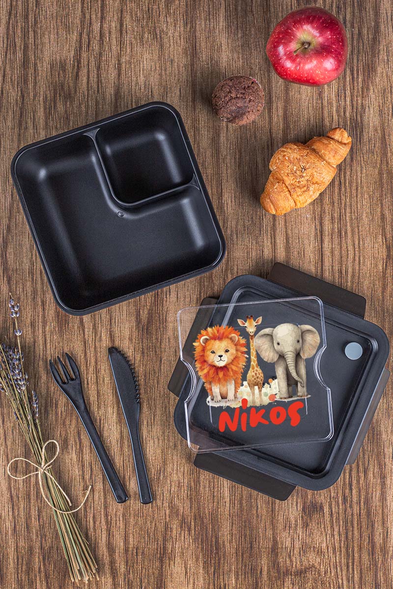 Δοχείο Φαγητού με Χώρισμα & το Όνομα του Παιδιού, Proud Animals