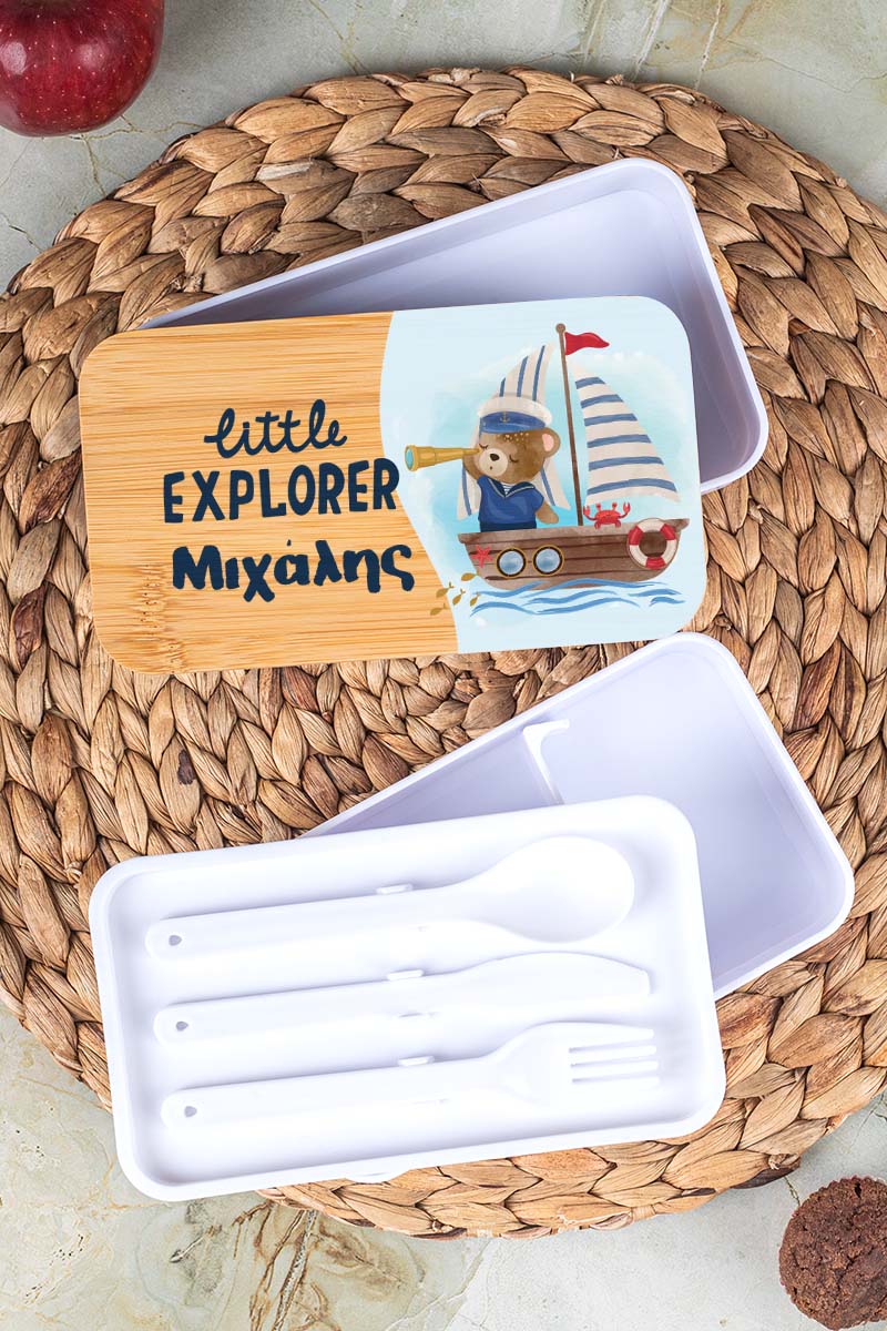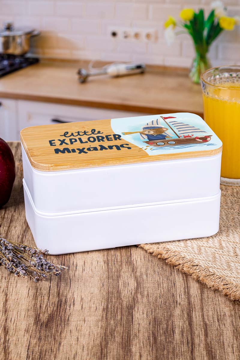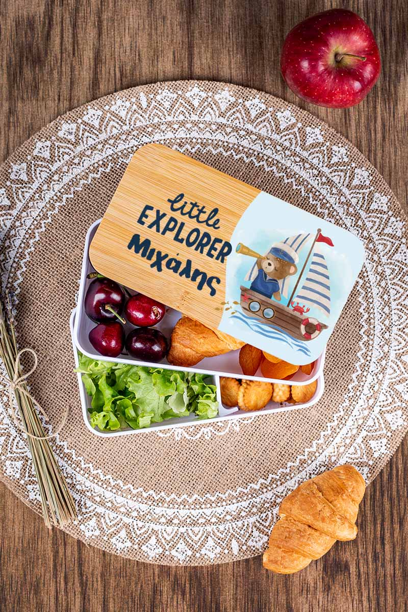 Δοχείου Φαγητού 2 Επιπέδων, με το Όνομα του Παιδιού, Sail Teddy
